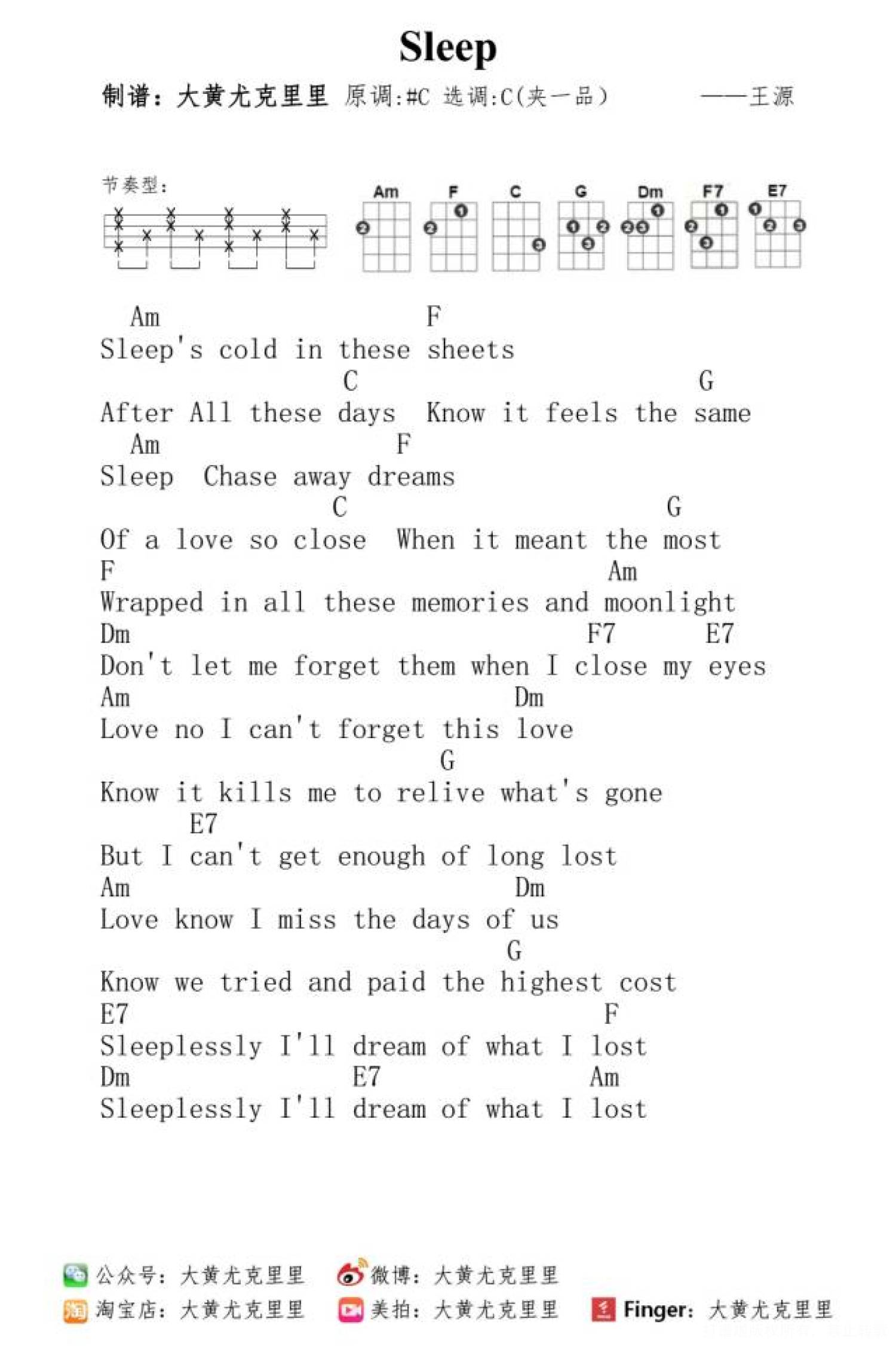 曲谱介绍: 《Sleep》尤克里里谱 C调