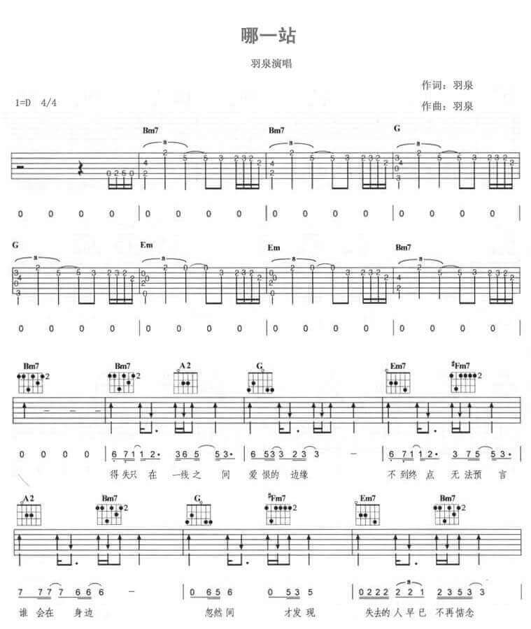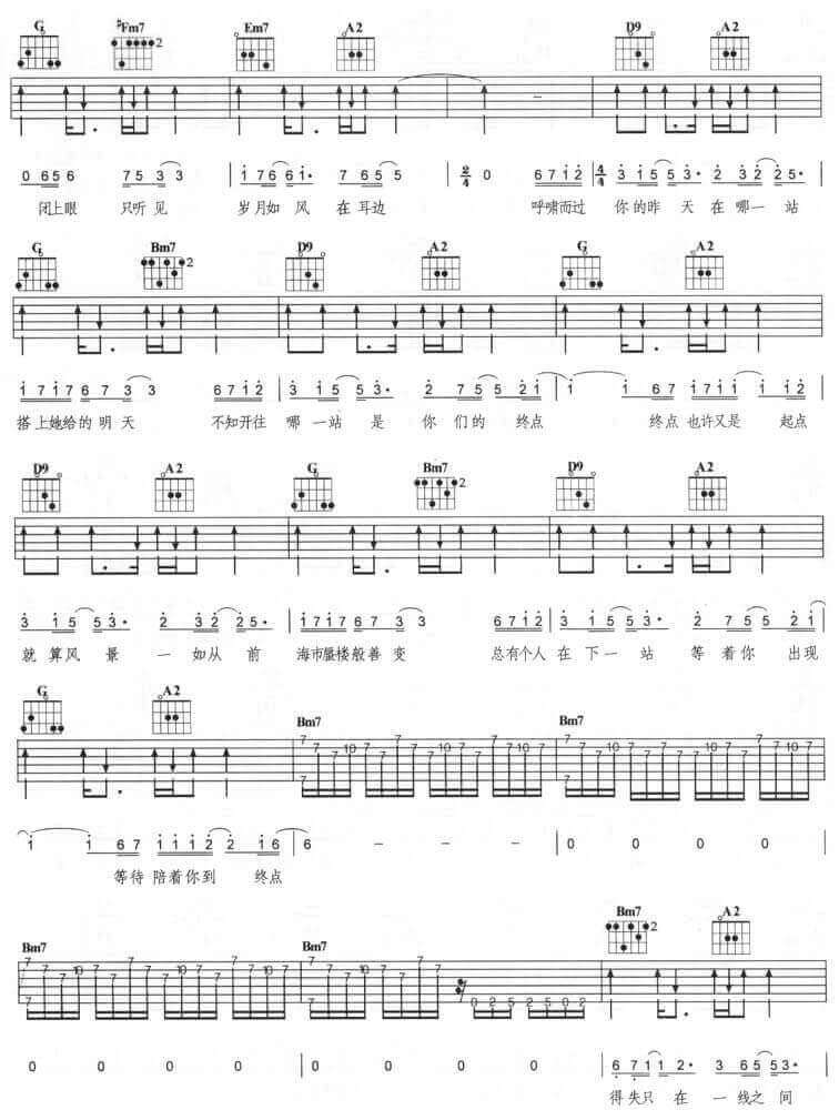 曲谱介绍: 据说,发行这首歌曲的时候,是他们人生事业的最低谷的时候,但是凡是听过这首歌专业人士都说,这是一首有故事的歌,用心去听,会发现,一念花落,一念花开,得失全在我们的心间。《哪一站》这首歌给人印象最深的是给人一种一泻千里的流畅感和看不到终点的茫然感。歌词将人生的机缘比作上车与下车的关系,我们不确定会走多远,但始终在等着下一站的信念始终存在,这是一种信仰。另外,这首丽江之歌吉他谱也超级好听,小伙伴们有福啦,还不去练起来?