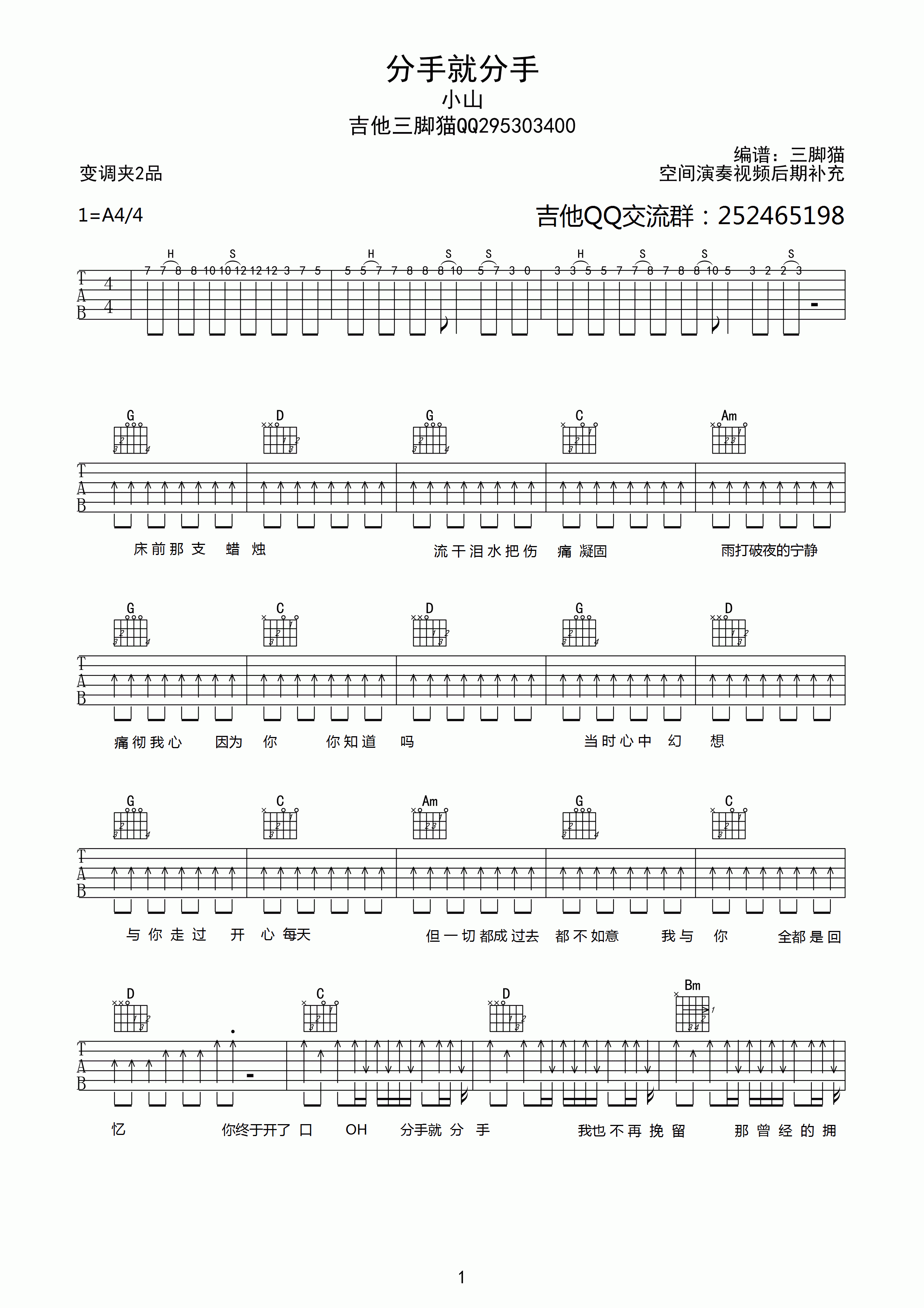 分手就分手吉他谱 - 小山 - A调吉他弹唱谱