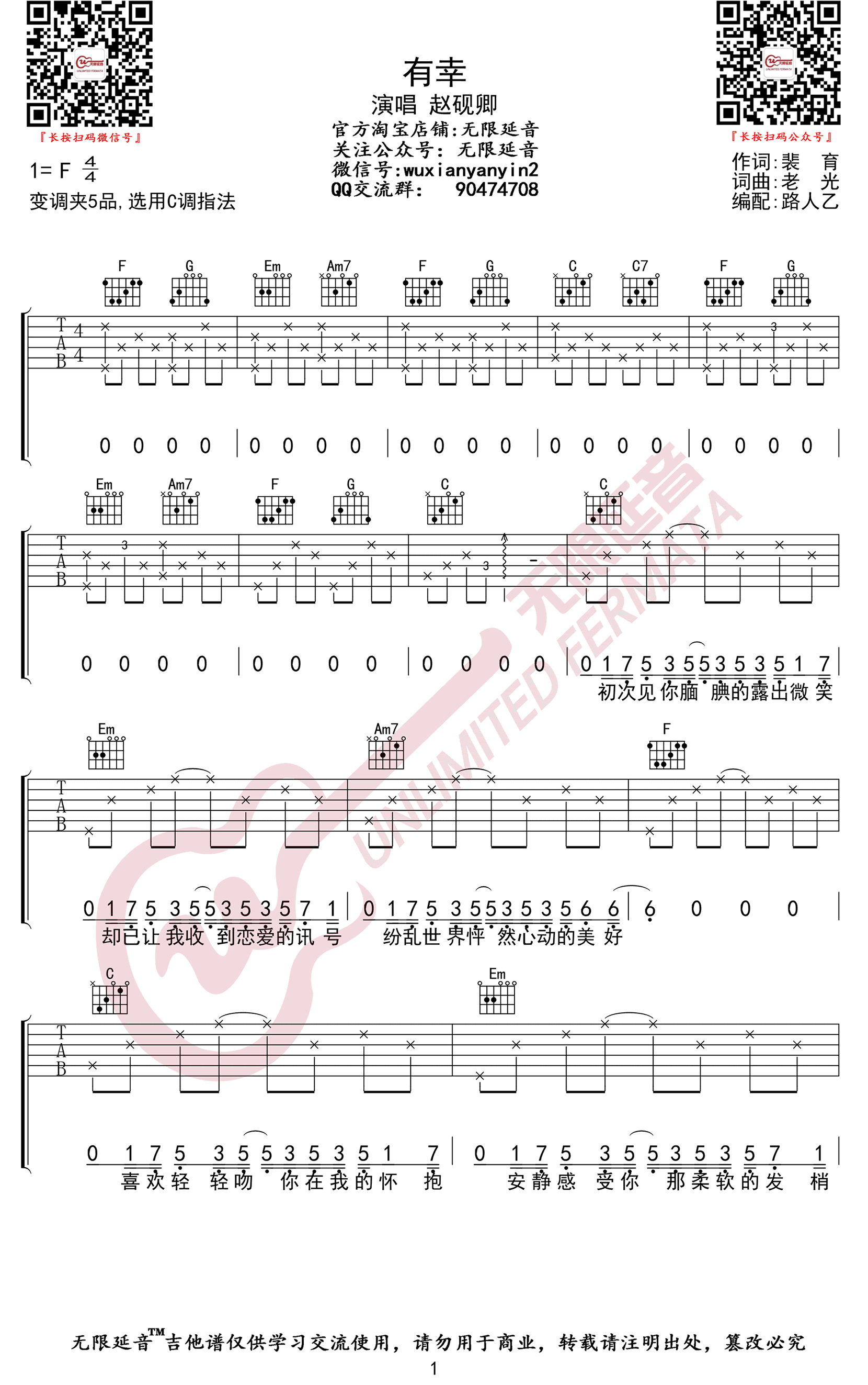 有幸吉他谱 - 赵砚卿 - F调吉他弹唱谱