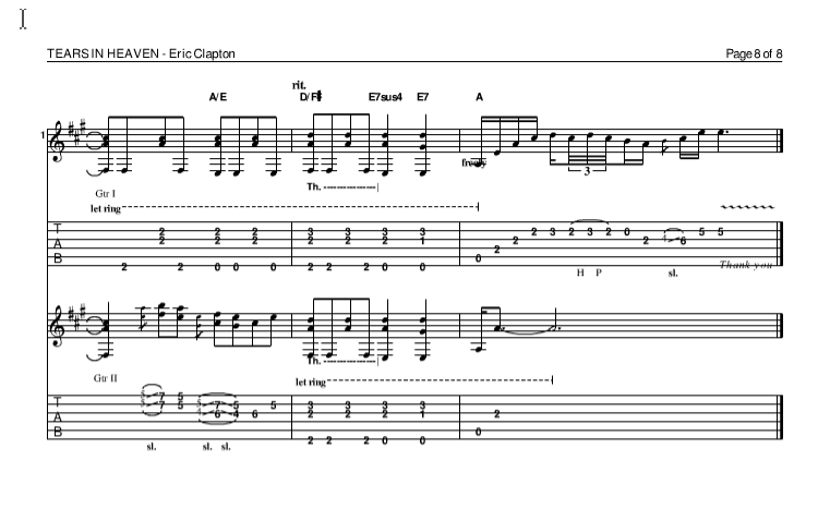 泪洒天堂吉他谱 - Eric - 吉他独奏谱
