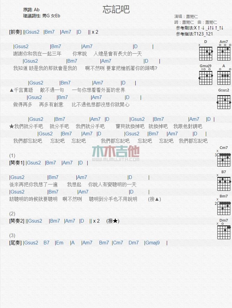 忘记吧_吉他谱 - 忘记吧 - 吉他弹唱谱