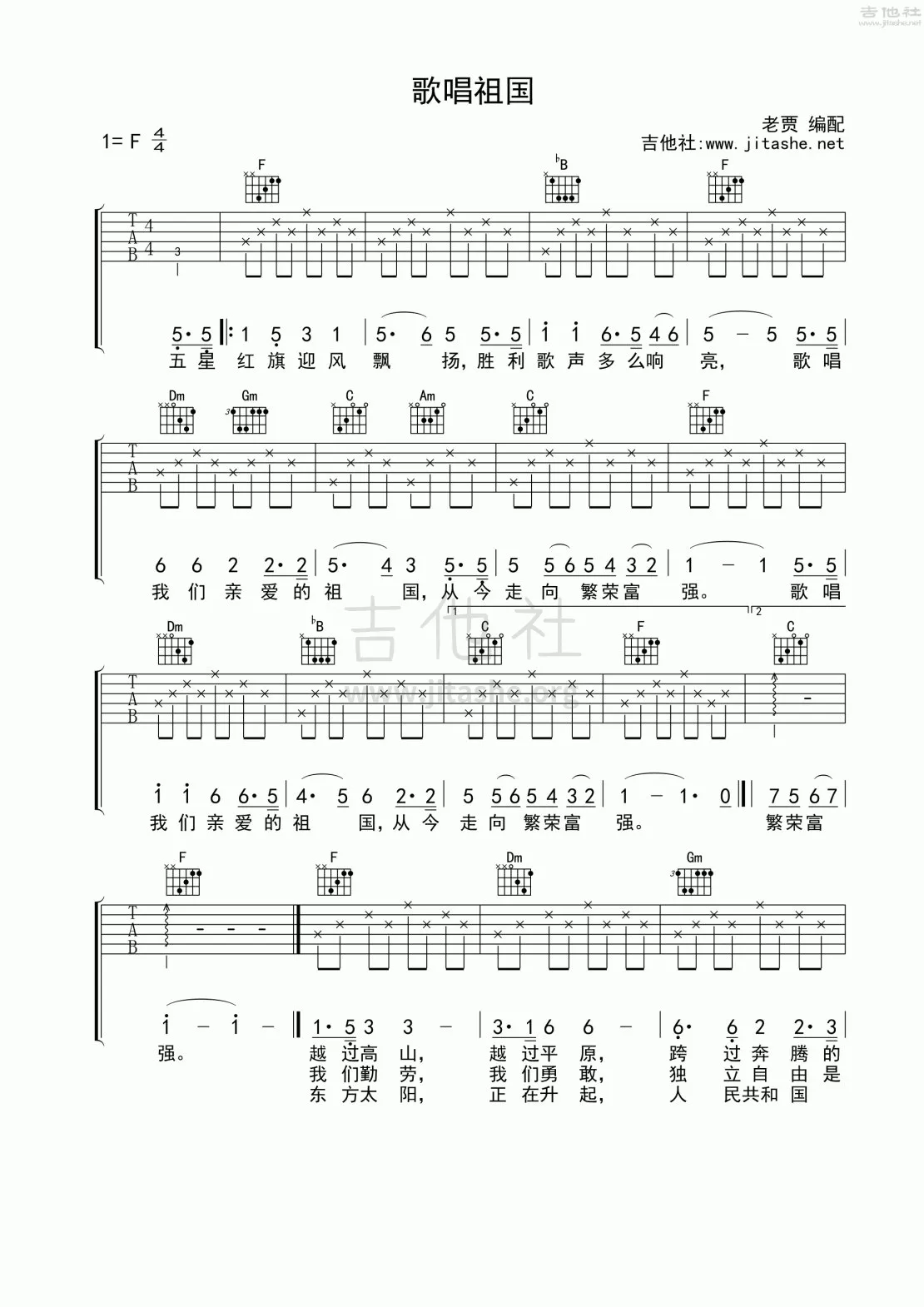 歌唱祖国吉他谱 - 群星 - F调吉他弹唱谱