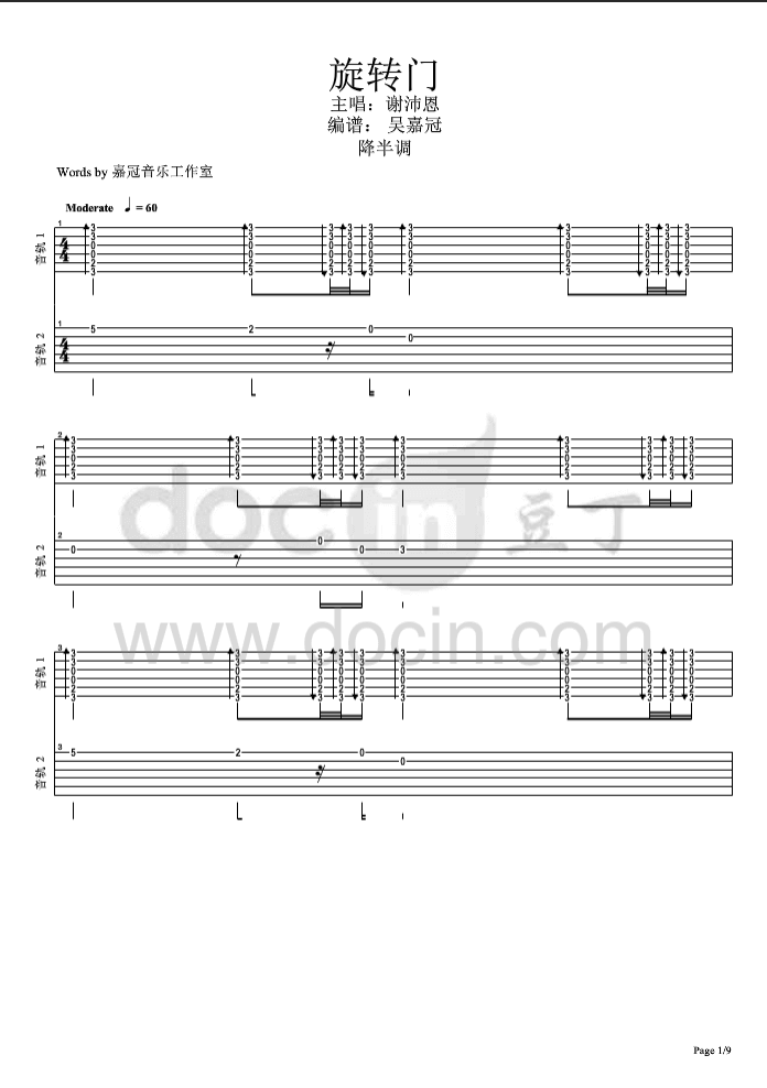 曲谱介绍: 旋转门吉他谱六线谱,由嘉冠音乐工作室做谱。这首歌是《我可能不会爱你 》电视剧原声带,谢沛恩《旋转门》,这首歌曲旋律非常好听,第一次听就爱上了。TIPS:在这里向大家推介另外一首,它就是lovesong吉他谱啦,非常动听的一首曲子!