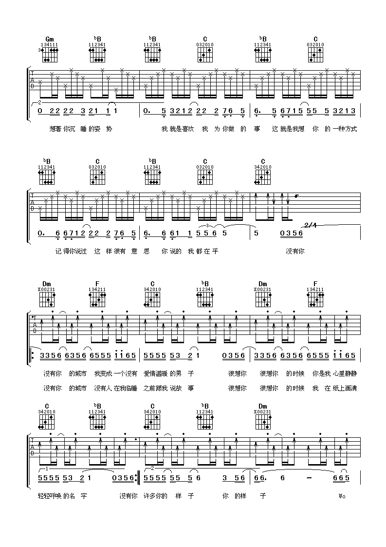 当前位置:琴谱网>吉他弹唱>没有你的城市