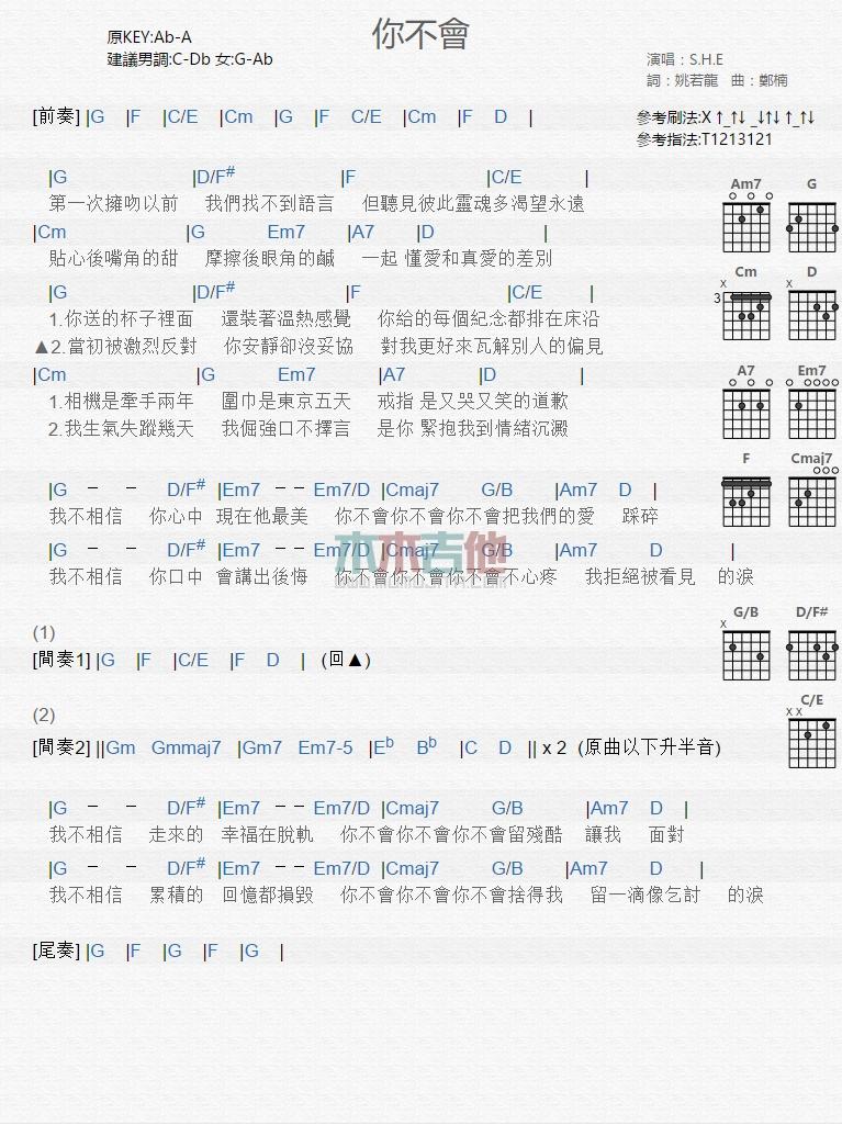 你不会_吉他谱 - 你不会 - 吉他弹唱谱