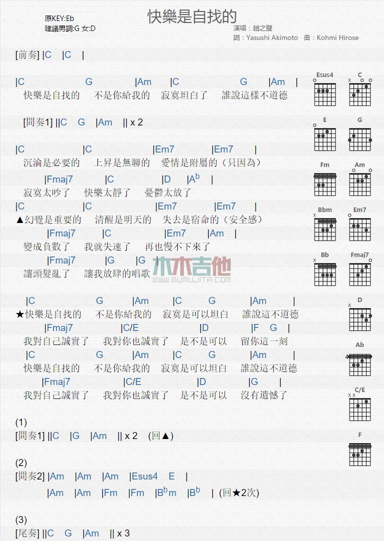 快乐是自找的_吉他谱 - 快乐是自找的 - 吉他弹唱谱
