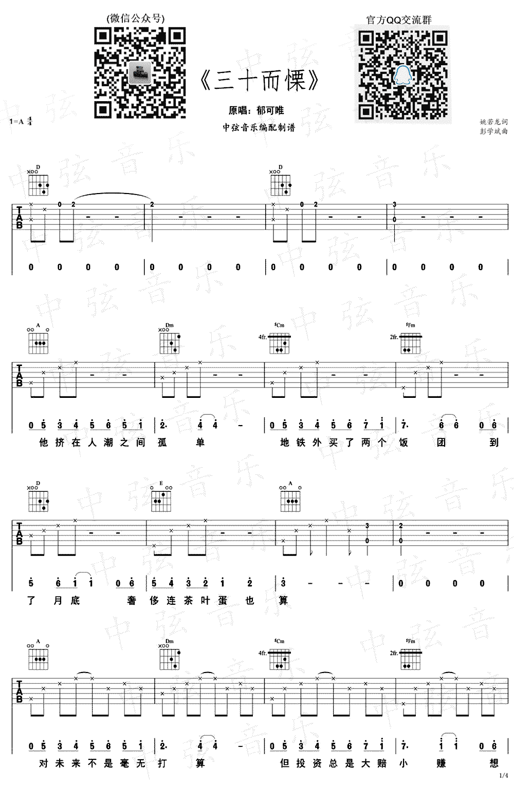 当前位置:琴谱网>吉他弹唱>三十而慄