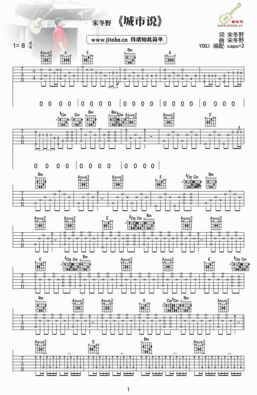 城市说吉他谱 - 宋冬野 - B调吉他弹唱谱