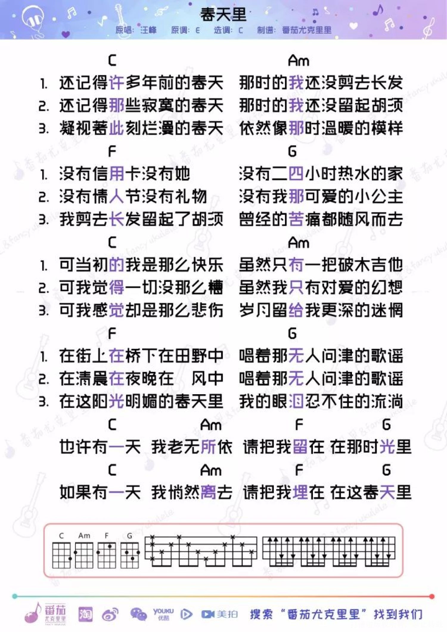 春天里尤克里里谱 - 汪峰