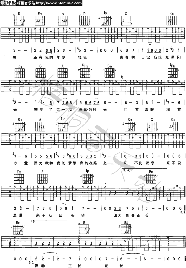 当前位置:琴谱网>吉他弹唱>青春日记
