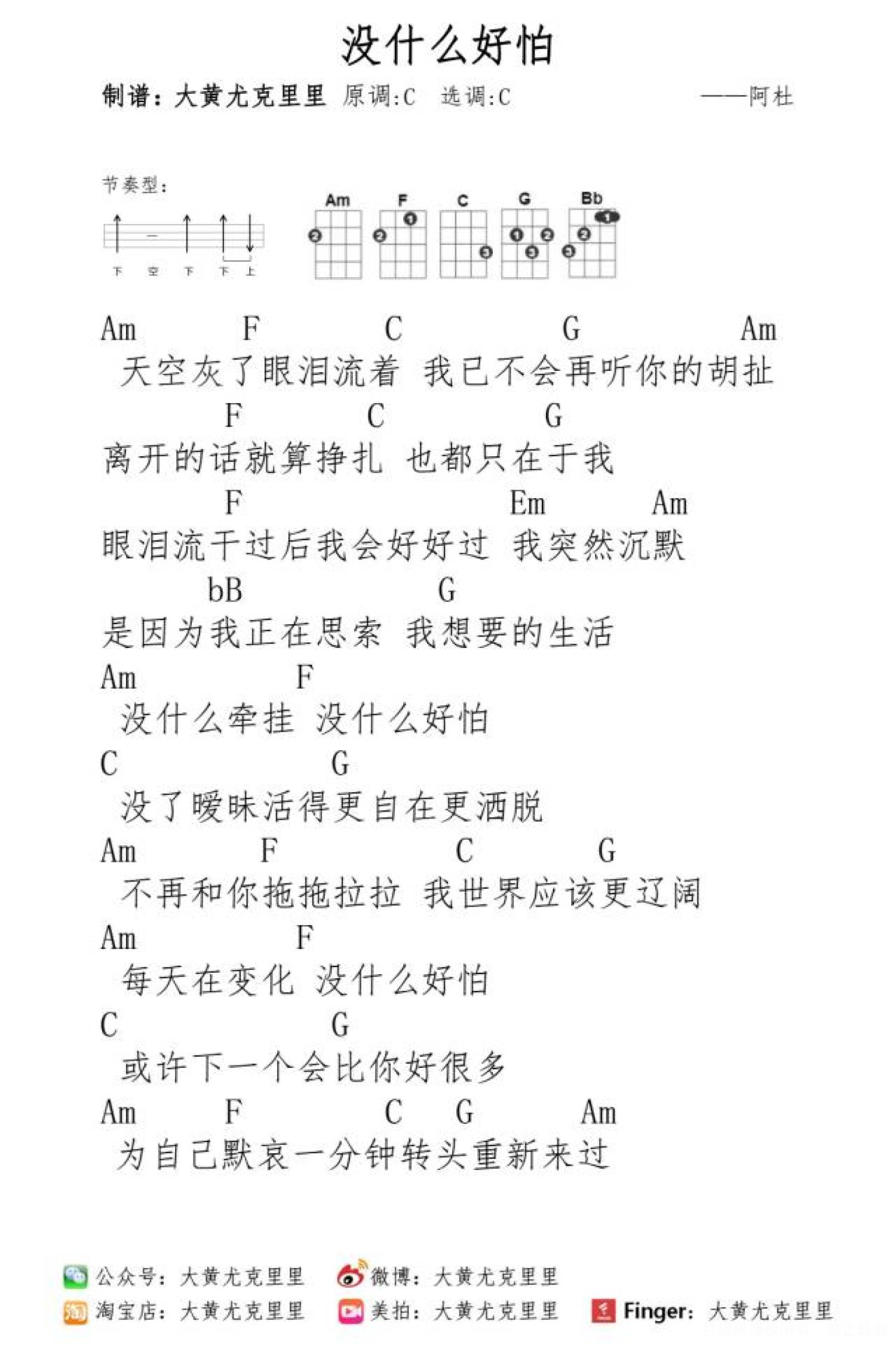 没什么好怕尤克里里谱 - 阿杜