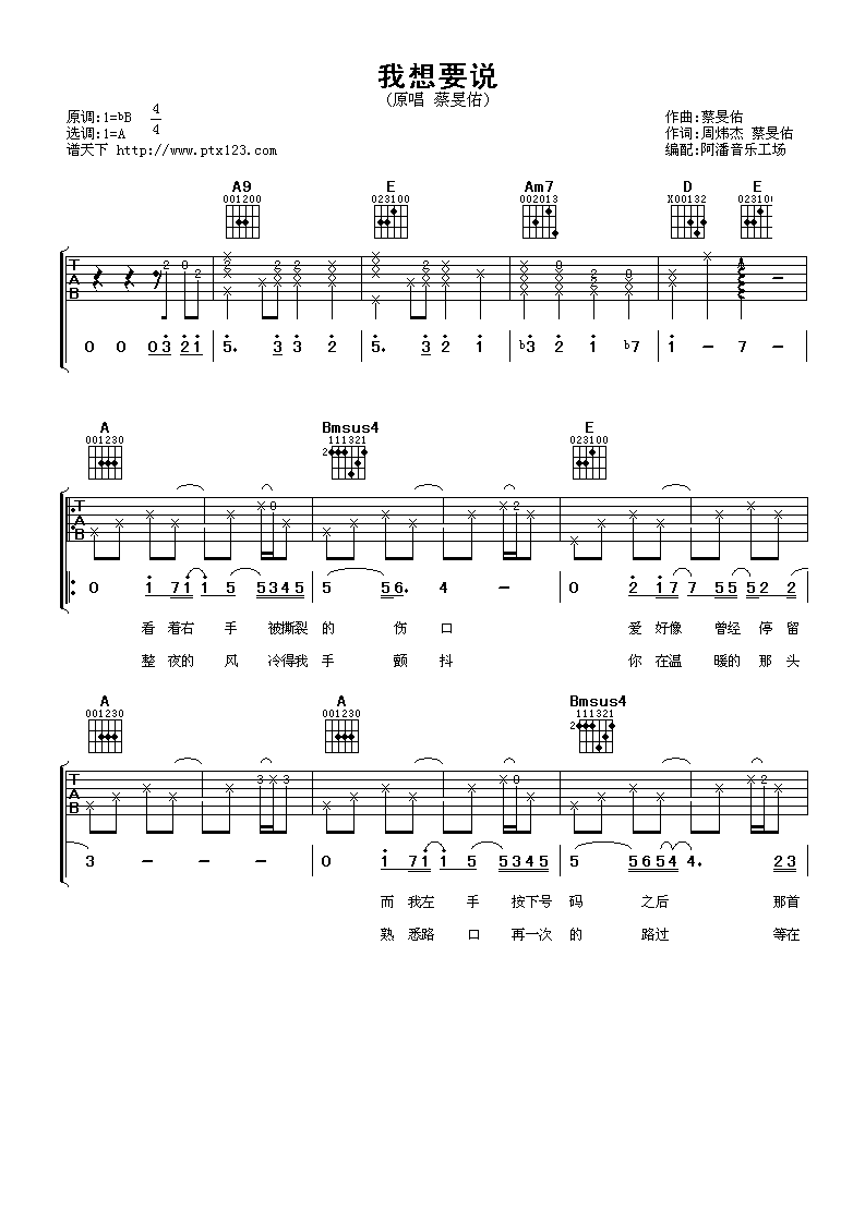 我想要说吉他谱 - 蔡旻佑 - A调吉他弹唱谱