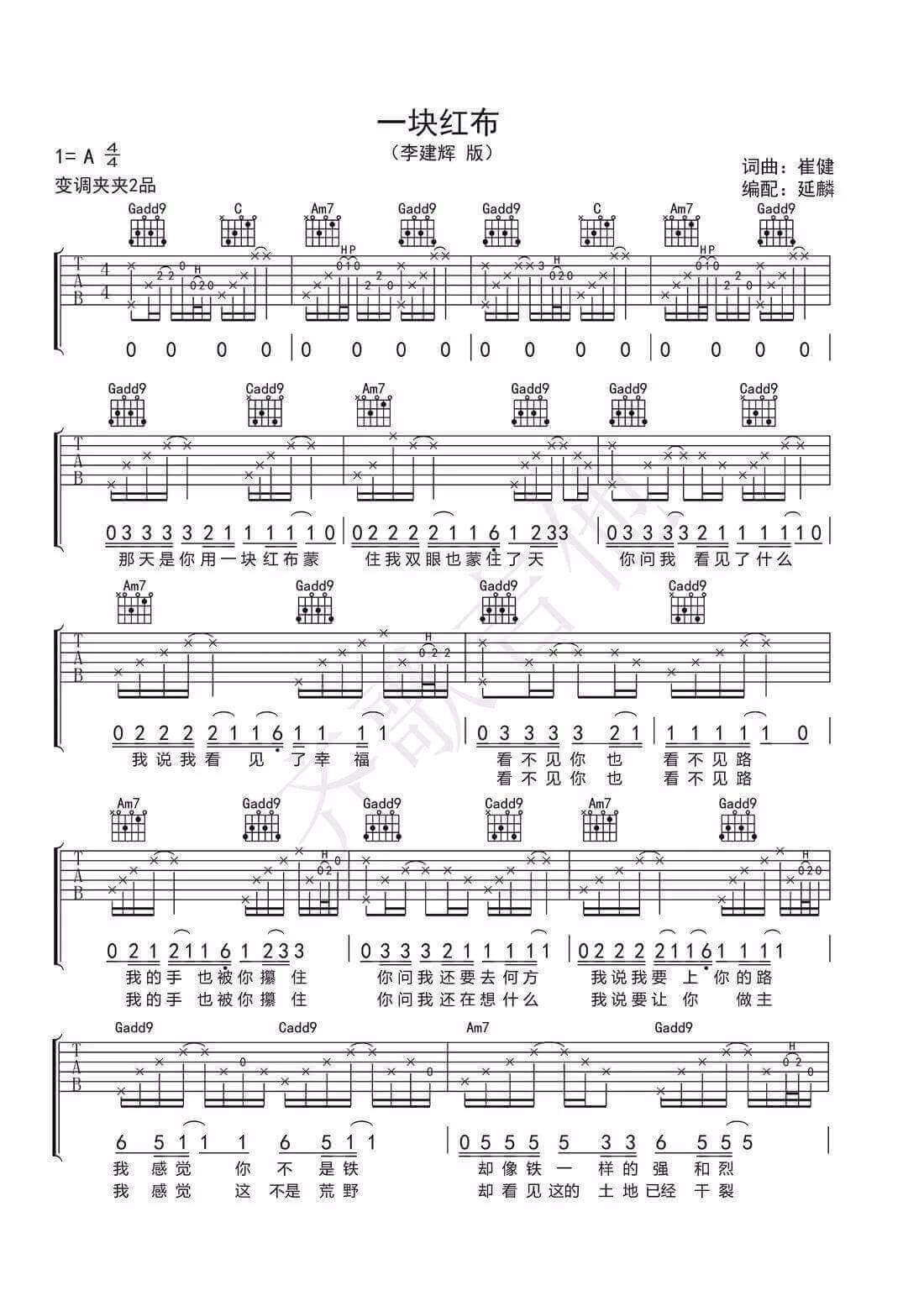 一块红布吉他谱 - 崔健 - A调吉他弹唱谱