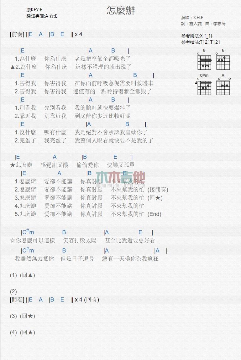 怎么办_吉他谱 - 怎么办 - 吉他弹唱谱