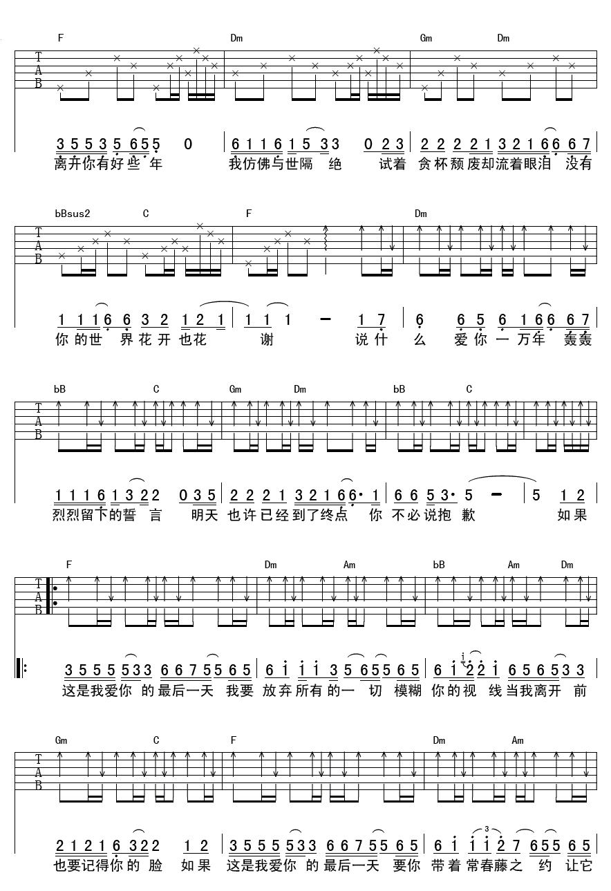 当前位置:琴谱网>吉他弹唱>爱你的最后一天