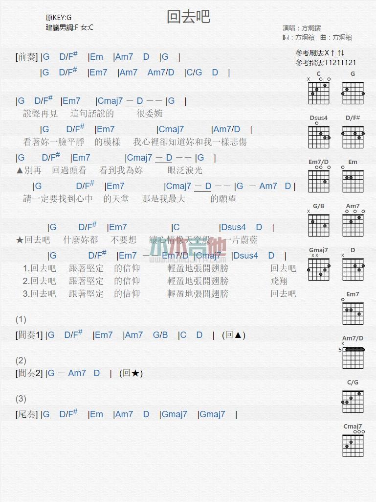 当前位置:琴谱网>吉他弹唱>回去吧_
