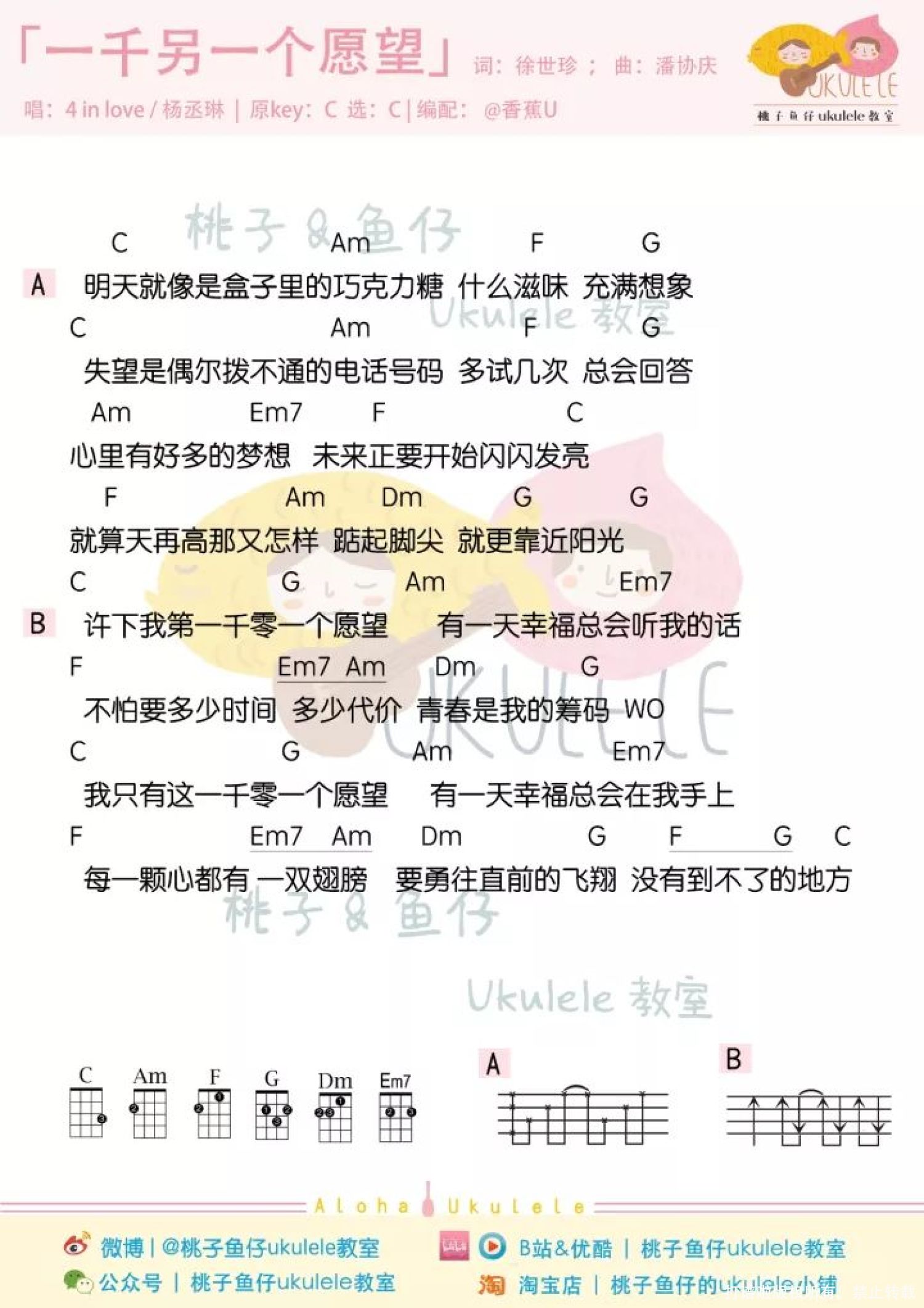 曲谱介绍: 「一千零一个愿望」尤克里里谱