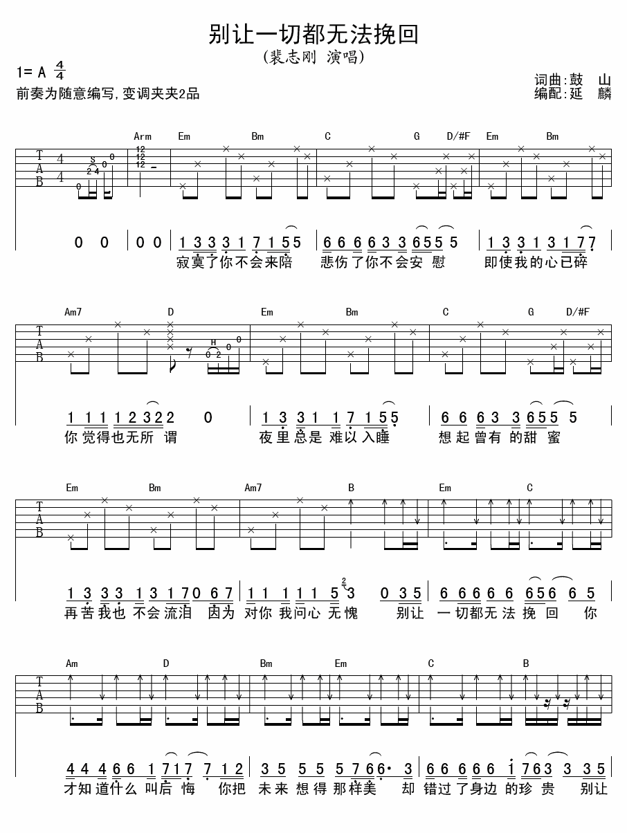 别让一切都无法挽回吉他谱 - 裴志刚 - A调吉他弹唱谱