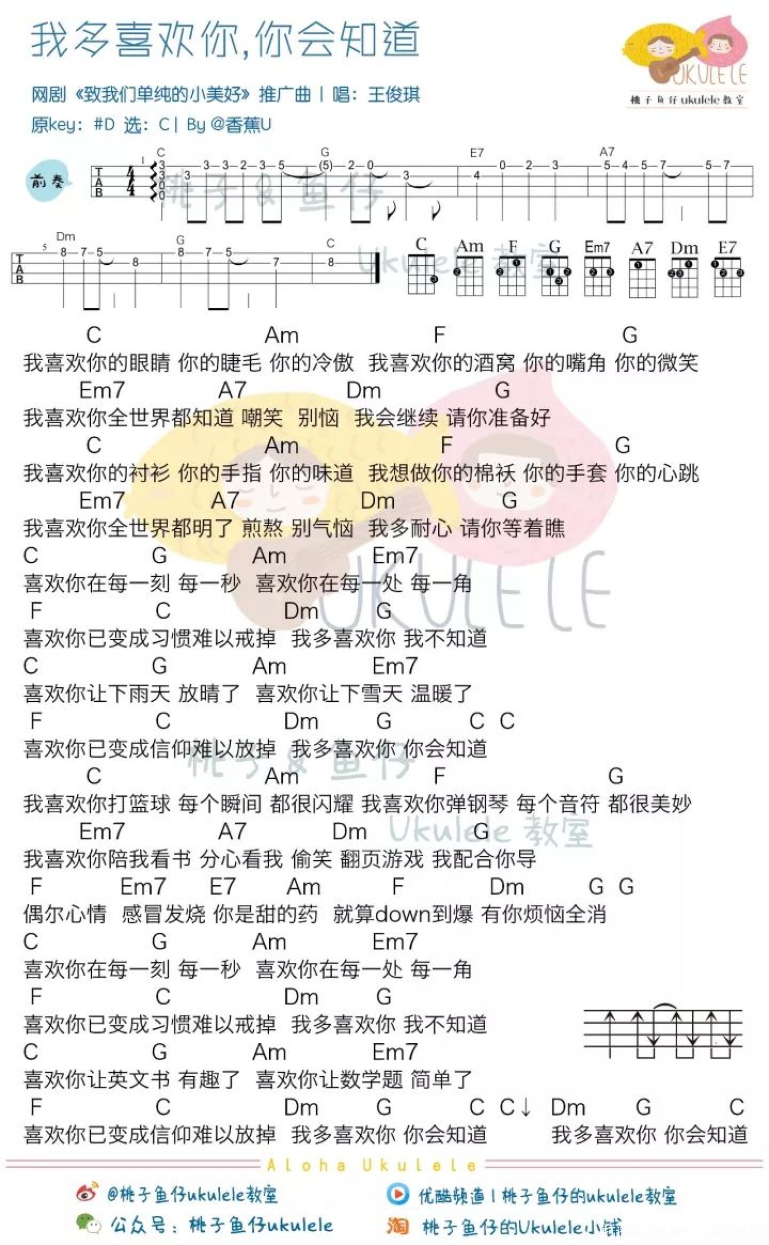 我多喜欢你,你会知道尤克里里谱 - 《致我们单纯的小美好》网剧推广曲