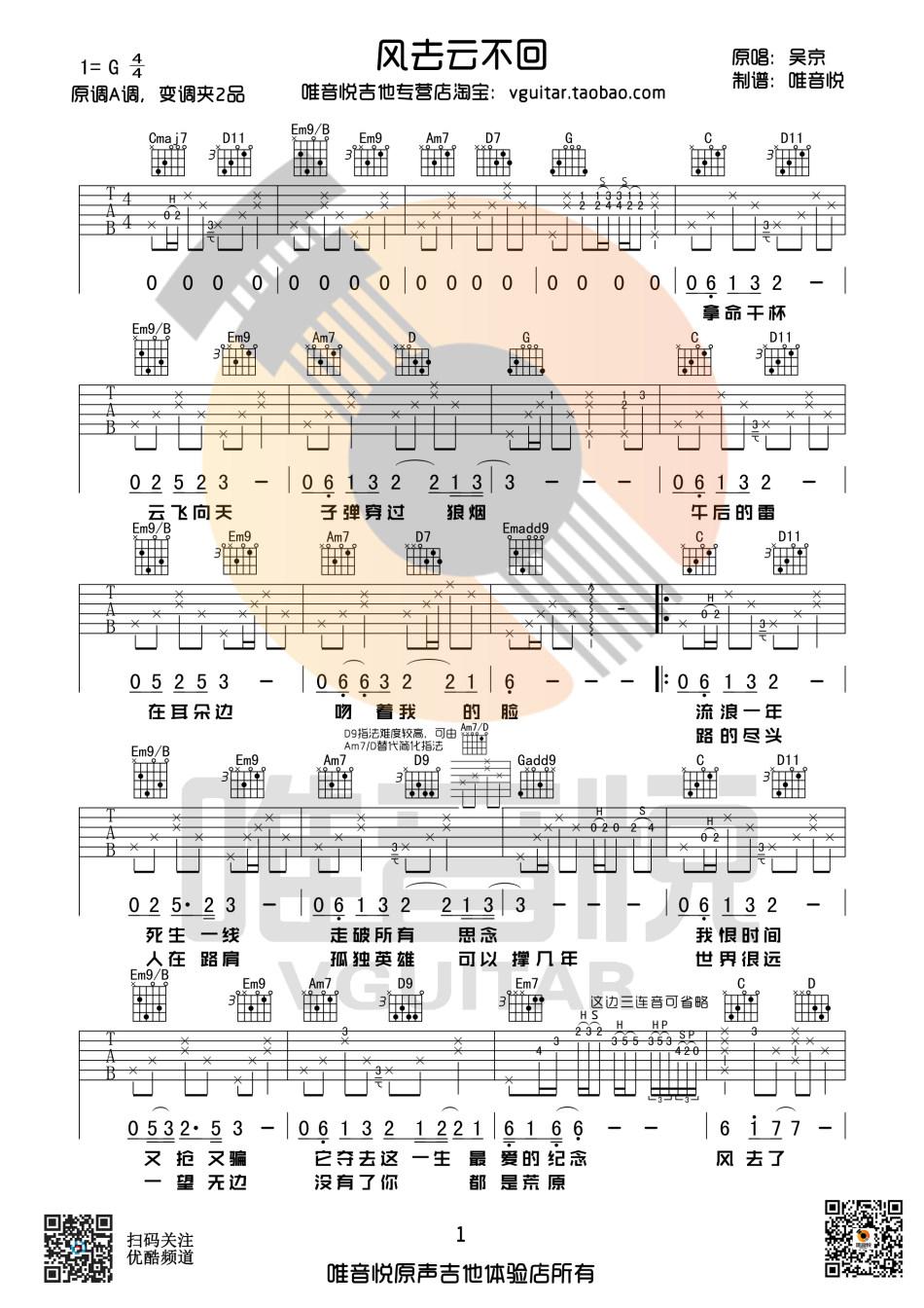风去云不回_吉他谱 - 风去云不回 - 吉他弹唱谱