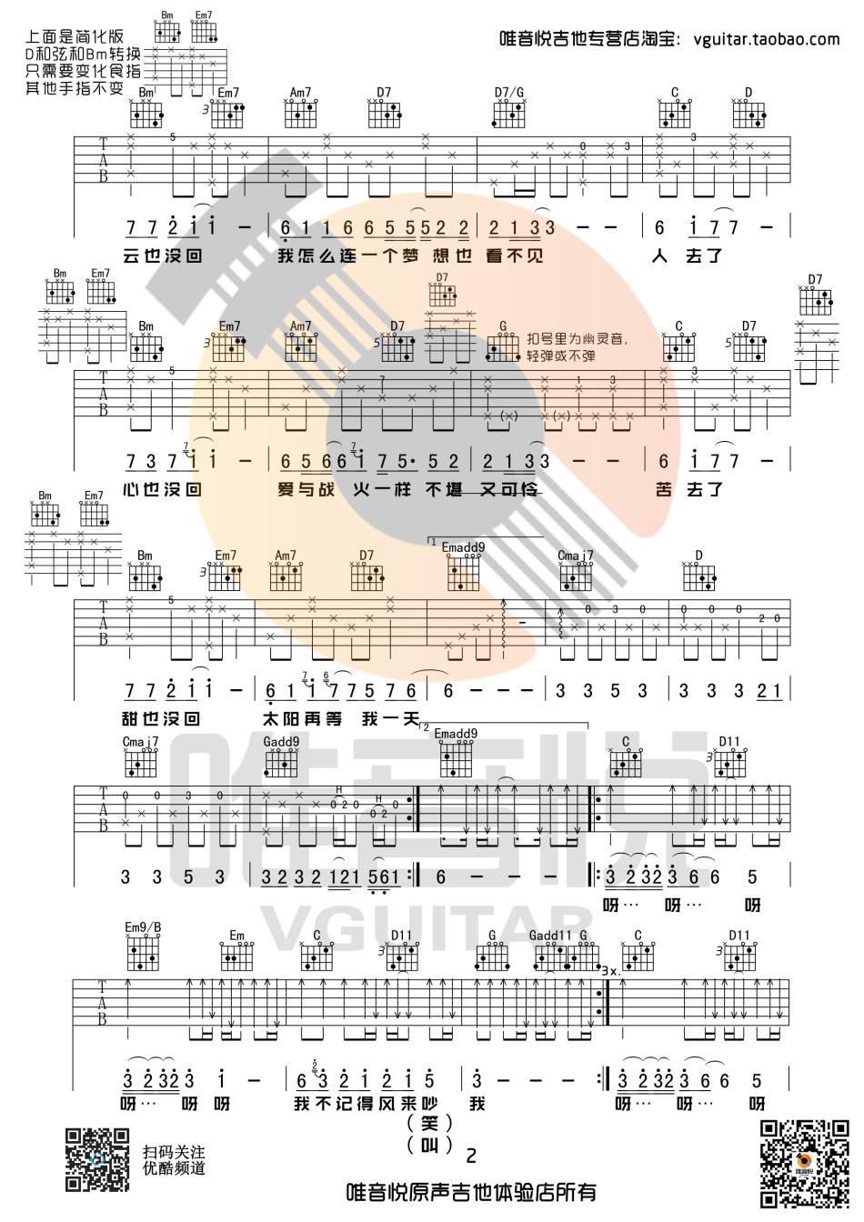 曲谱介绍: 风去云不回《风去云不回_》吉他弹唱谱,共有3张高清图谱。