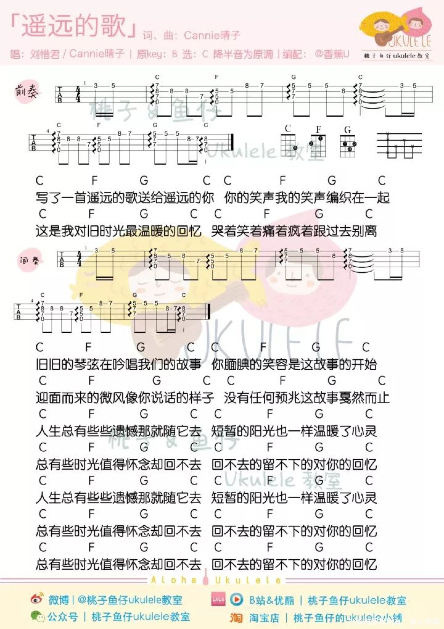 曲谱介绍: 《遥远的歌》尤克里里弹唱谱