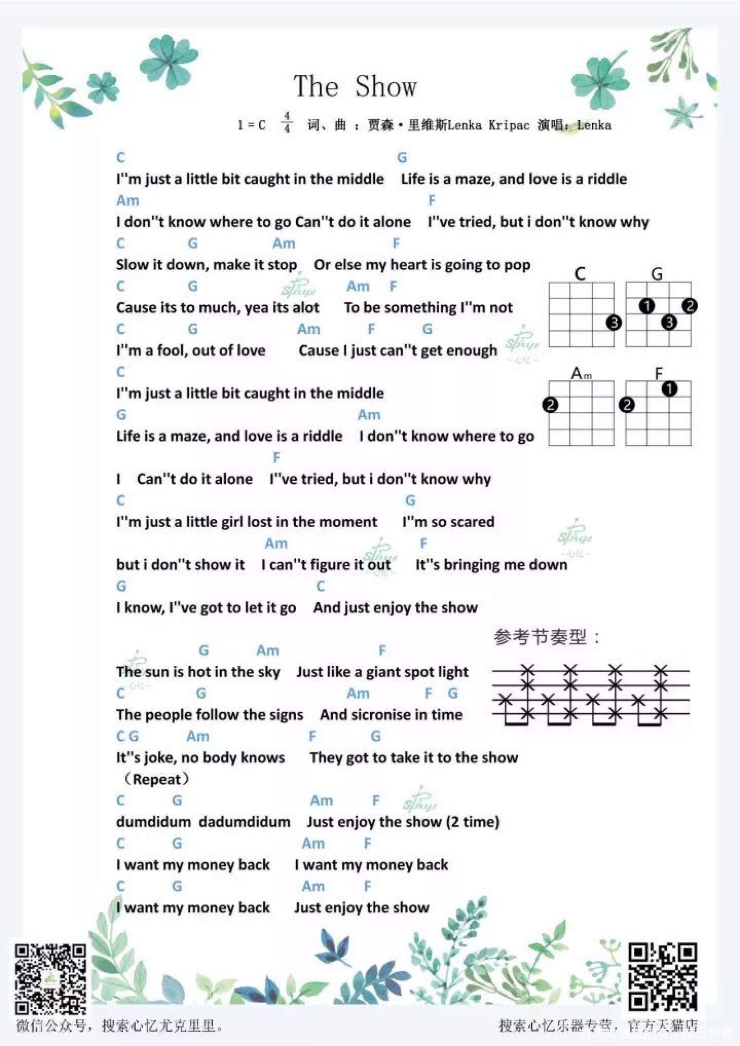 曲谱介绍: 「The show」尤克里里弹唱谱 >Lenka" width="720" height="1018" srcset="https://www.ukulelefan.com/wp-content/uploads/2017/11/show.jpg 720w, https://www.ukulelefan.com/wp-content/uploads/2017/11/show-212x300.jpg 212w" sizes="(max-width: 720px) 100vw, 720px" />