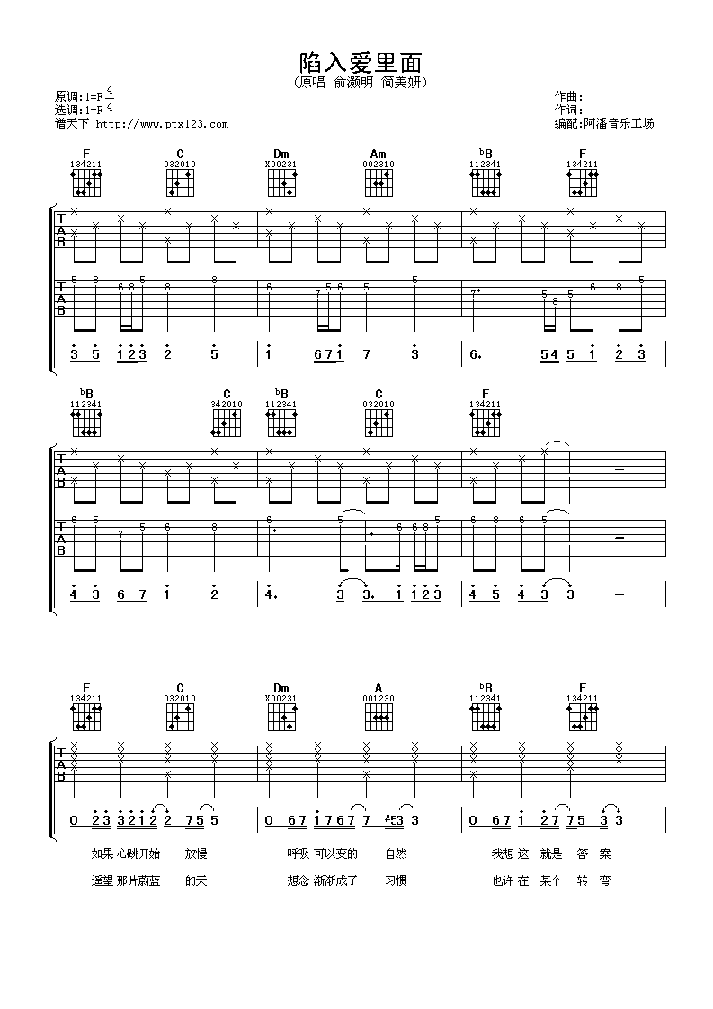 陷入爱里面吉他谱 - 俞灏明 - F调吉他弹唱谱