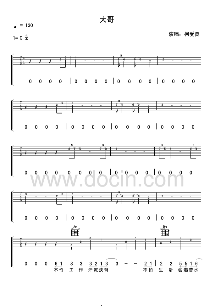 大哥吉他谱 - 柯受良 - C调吉他独奏谱