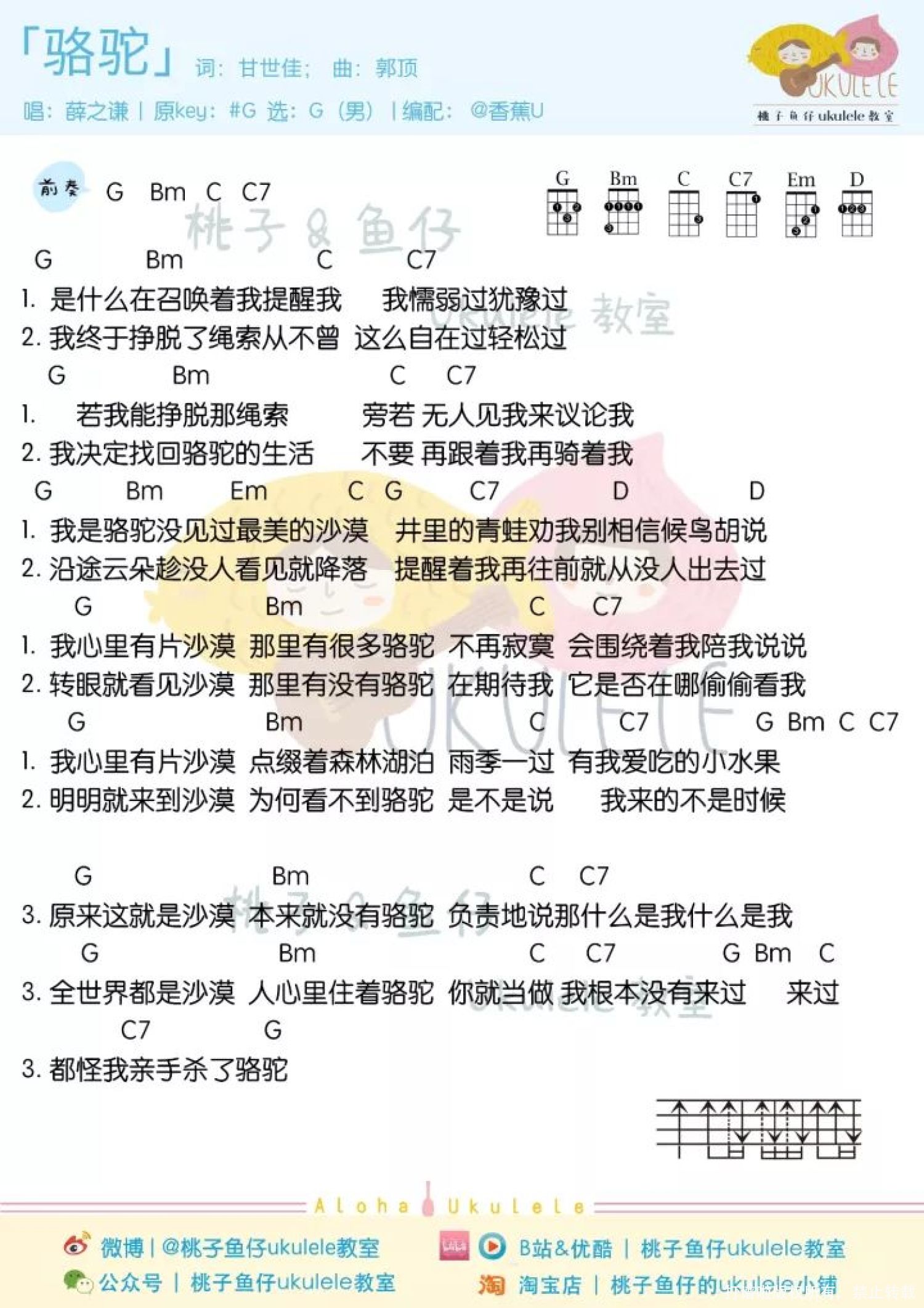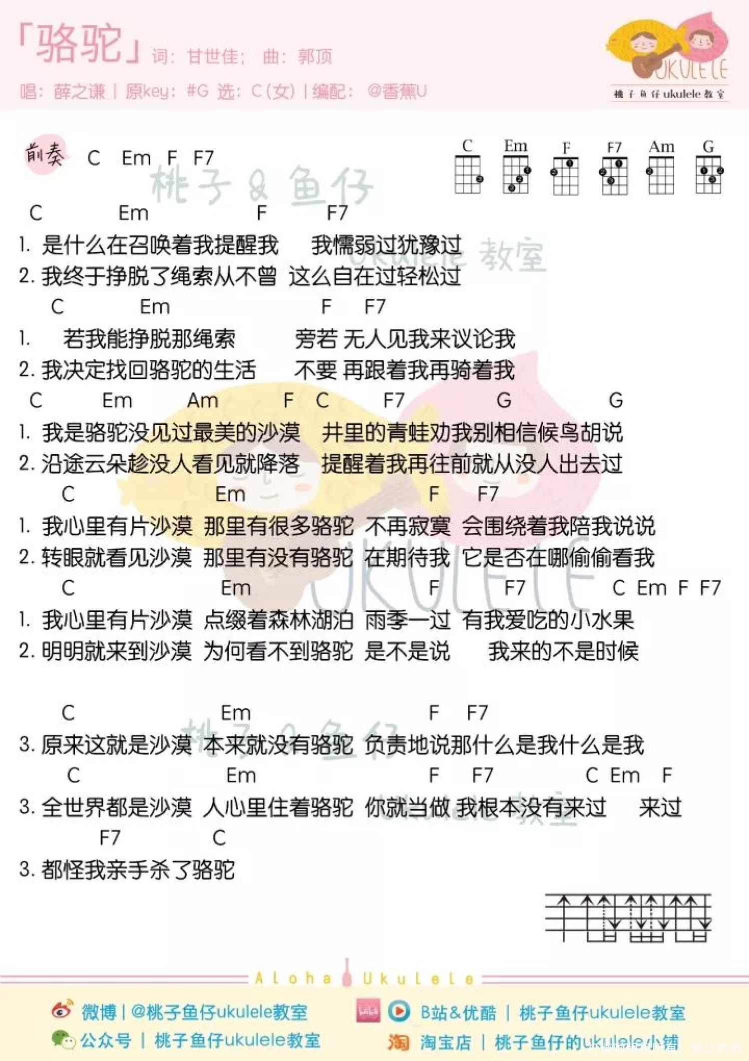 曲谱介绍: 「骆驼」• 薛之谦(尤克里里弹唱谱) 1、女声版 2、男声版