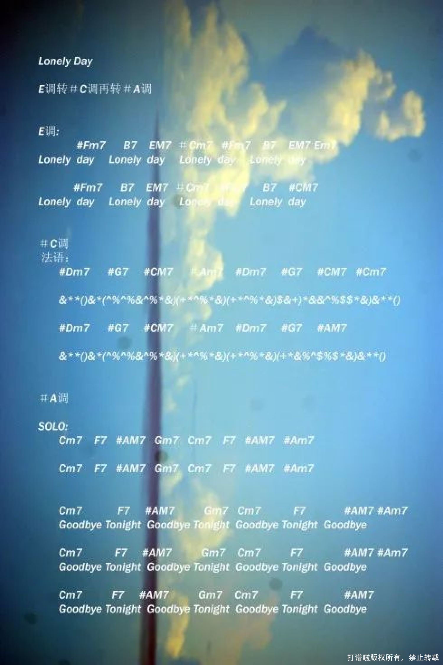 当前位置:琴谱网>尤克里里>Lonely Day