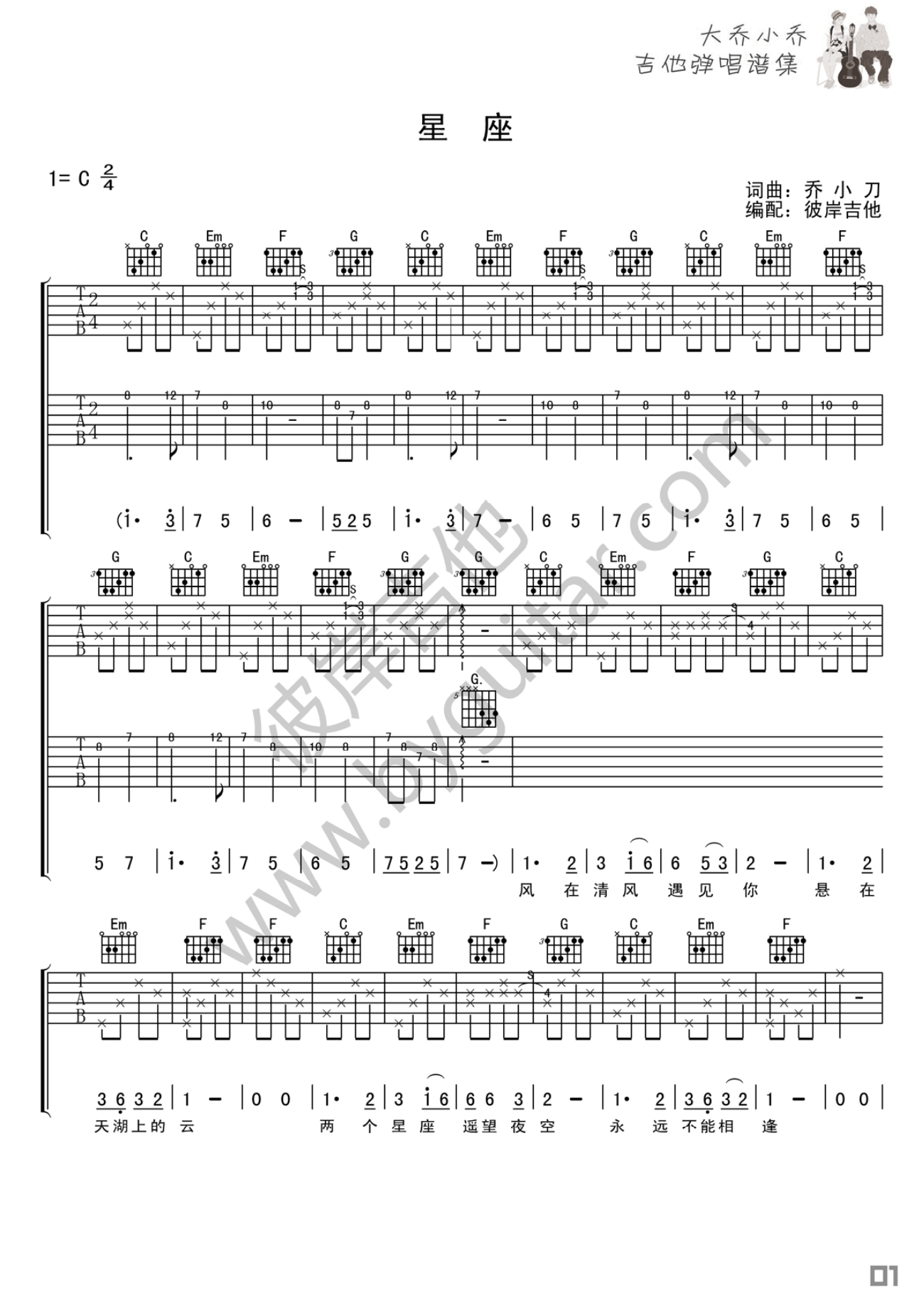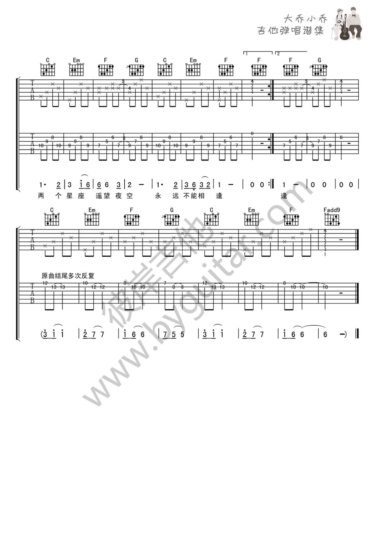 星座吉他谱 - 大乔小乔 - B调吉他弹唱谱