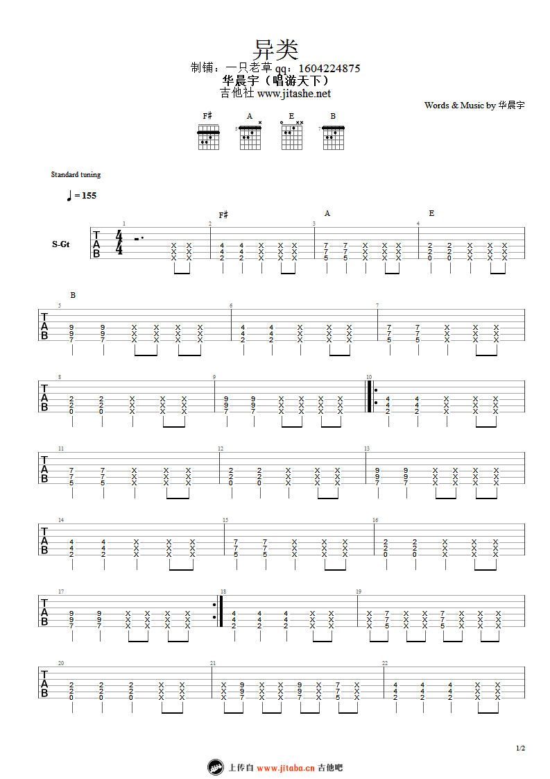 异类吉他谱 - 华晨宇 - 吉他独奏谱