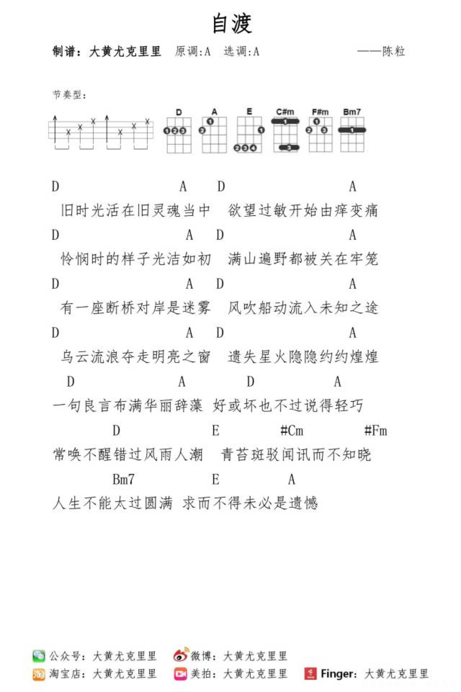 曲谱介绍: 《自渡》尤克里里谱
