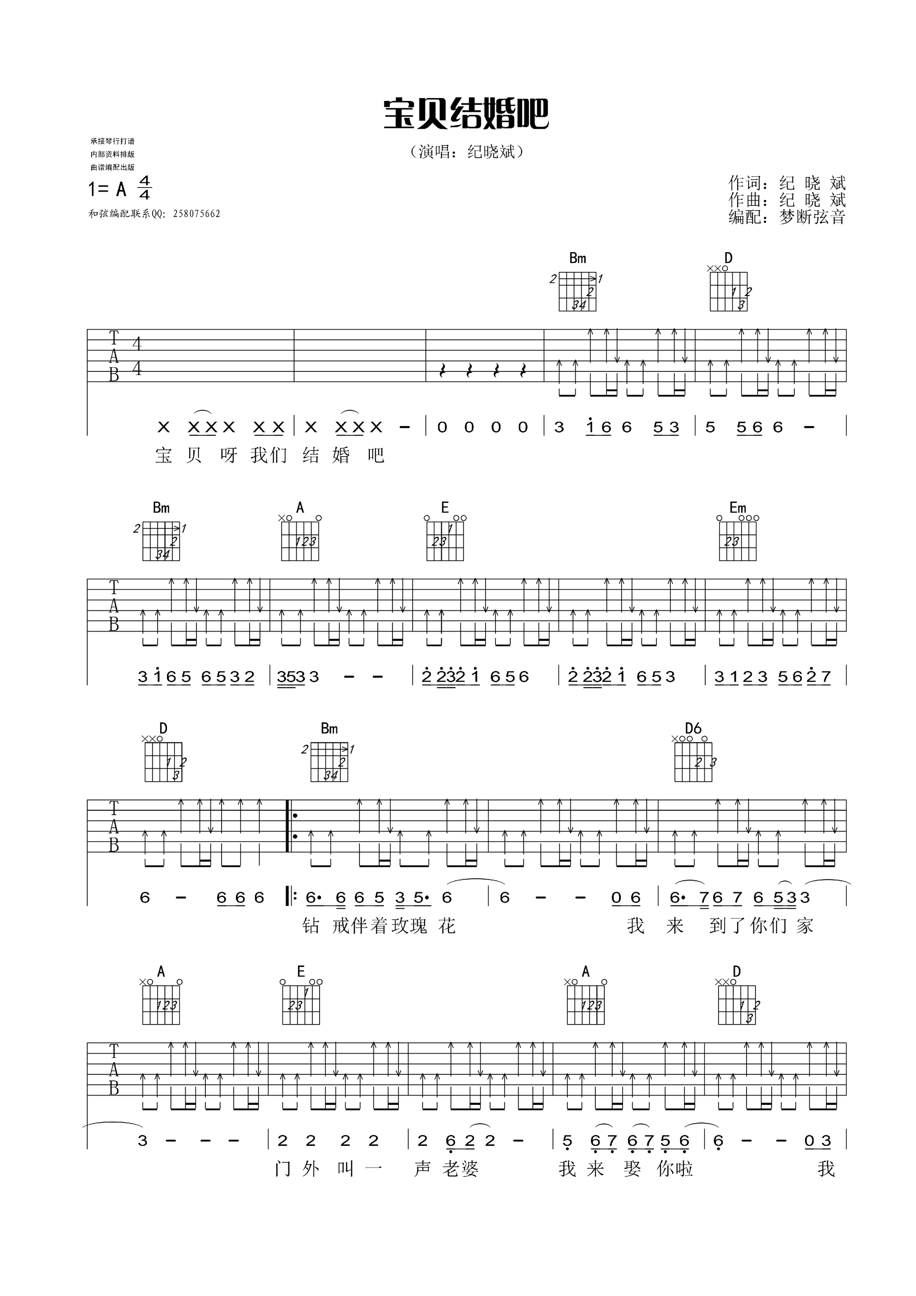 宝贝结婚吧吉他谱 - 纪晓斌 - A调吉他弹唱谱