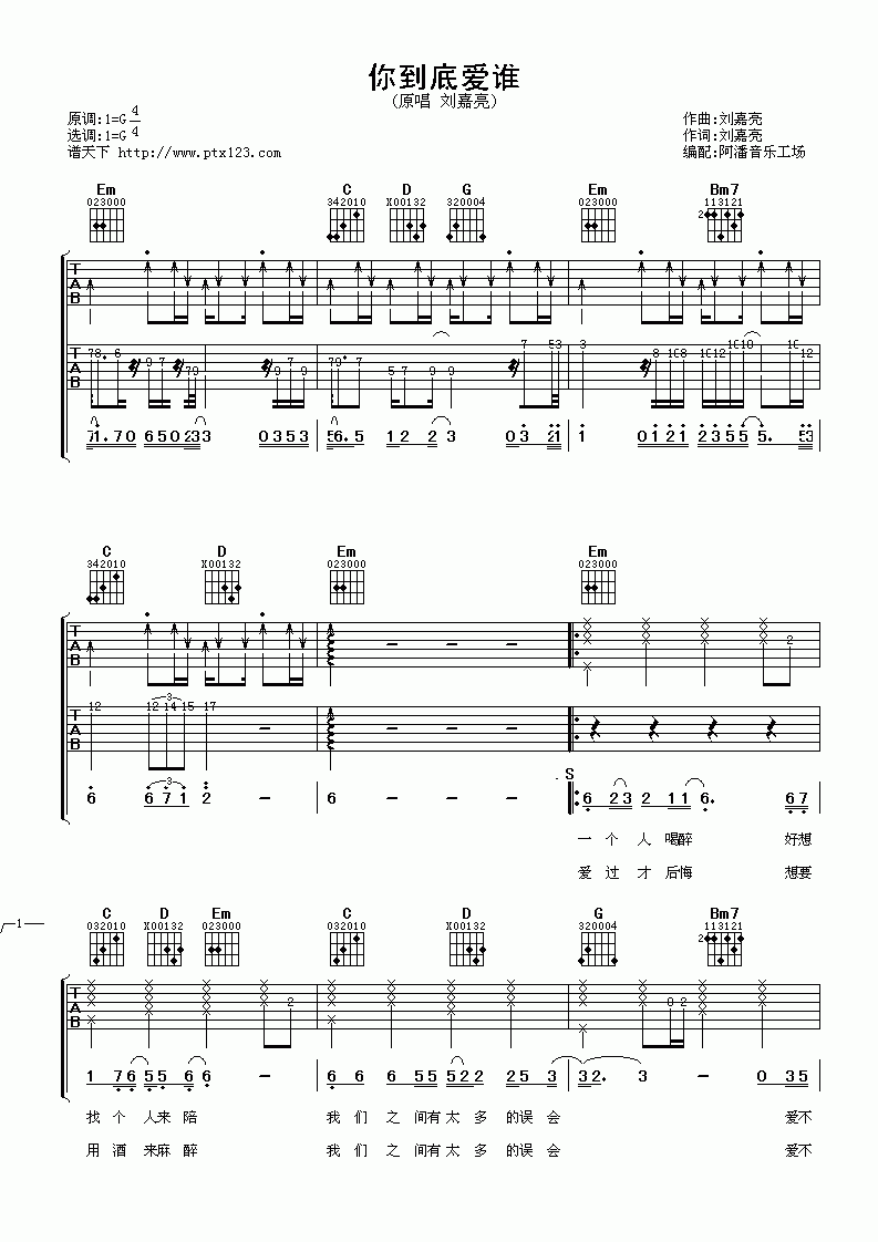 刘嘉亮 你到底爱谁吉他谱 - 刘嘉亮 - 吉他弹唱谱
