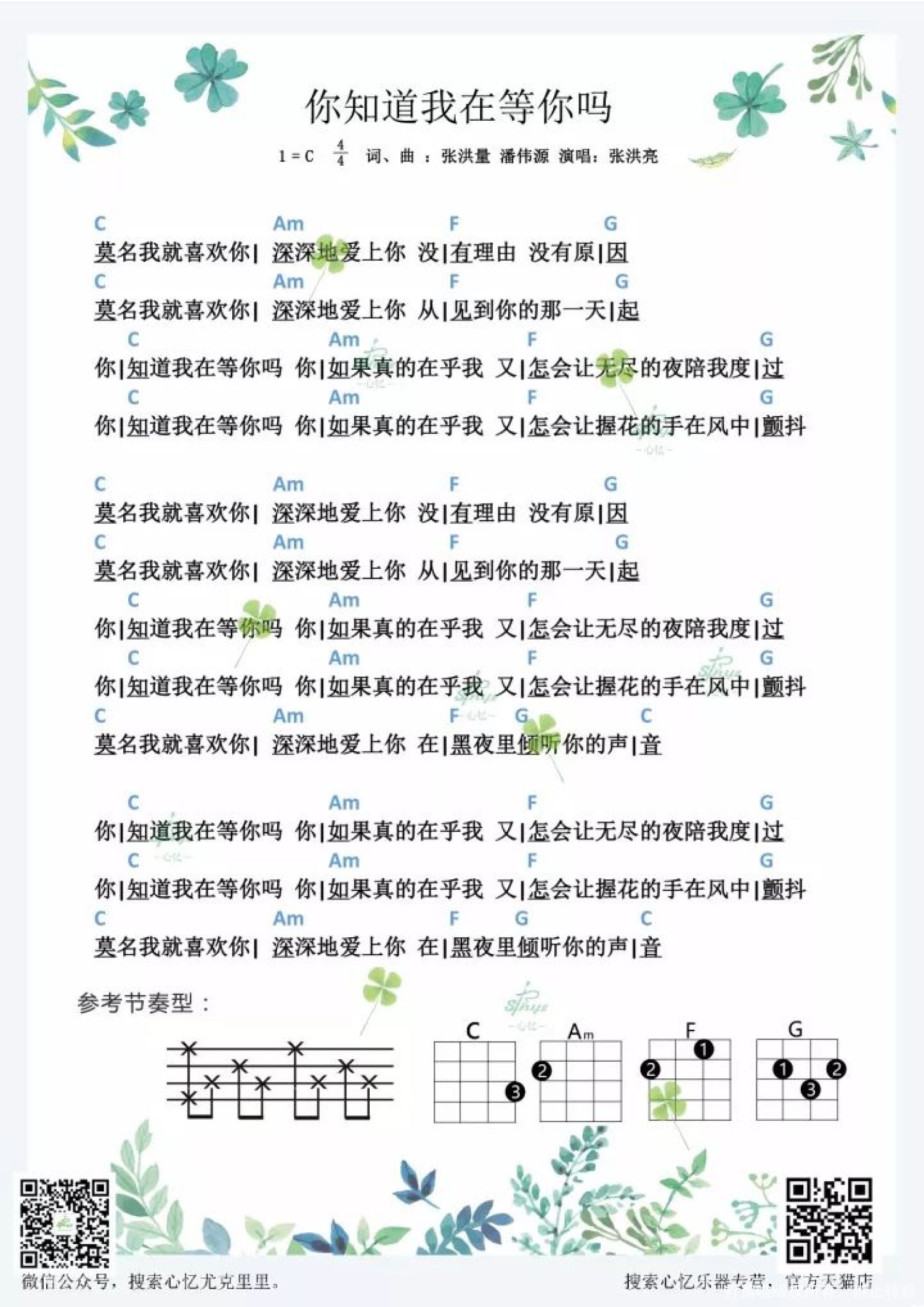 曲谱介绍: 「你知道我在等你吗」尤克里里弹唱谱