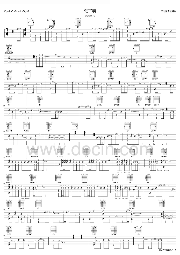 曲谱介绍: 忘了哭吉他谱由豆丁编配完成。另外,这首亲爱的今夜你在哪里吉他谱也超级好听,小伙伴们有福啦,还不去练起来?