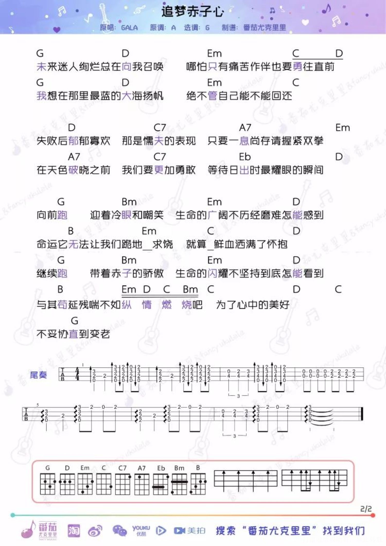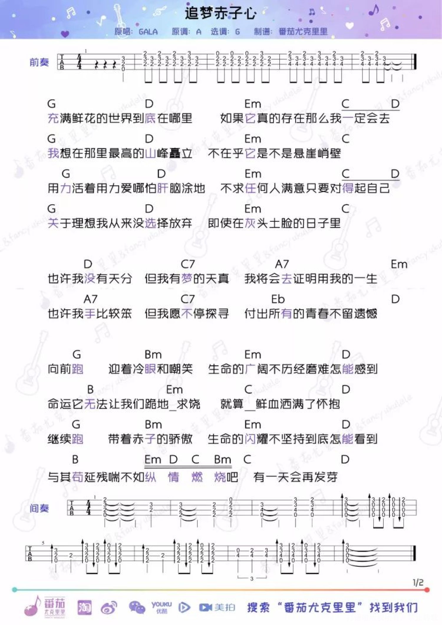 曲谱介绍: 《追梦赤子心》乌克丽丽谱