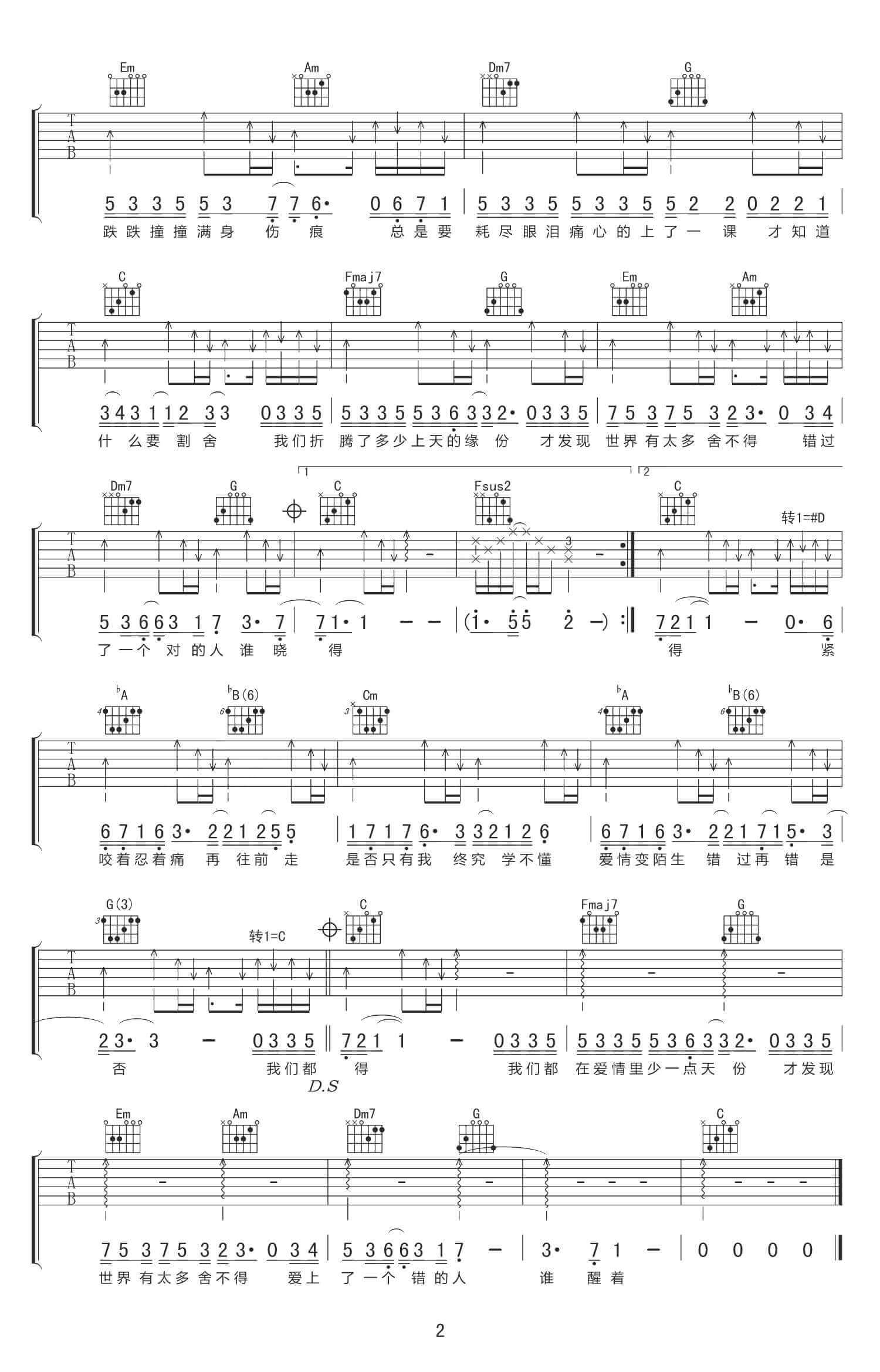 吉他弹唱D调来源:良好市民305 浏览2024-01-30 12:32发布图谱共2页