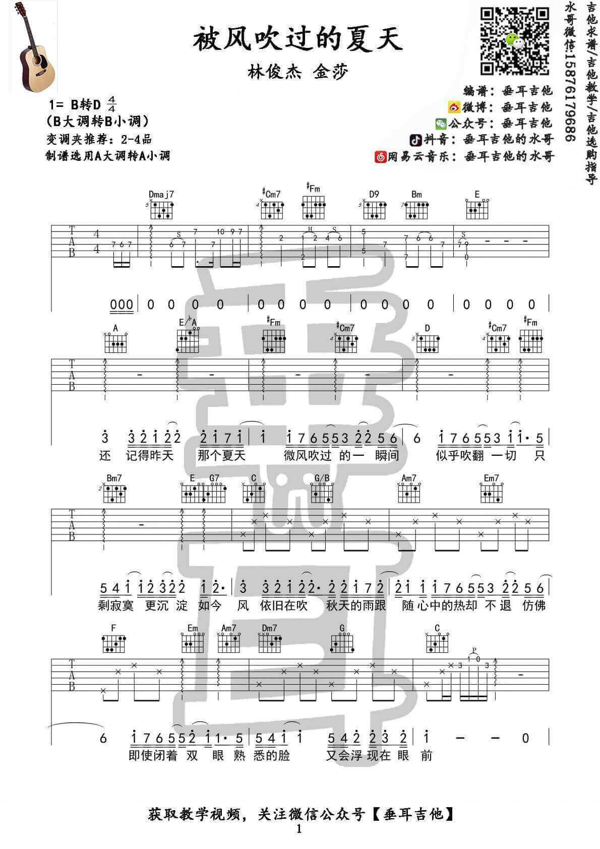曲谱介绍: 被风吹过的夏天吉他谱采用了A调指法,由垂耳吉他编配完成。这首歌曲是电视剧《最佳前男友》的插曲,由林俊杰和女歌手金莎演唱。