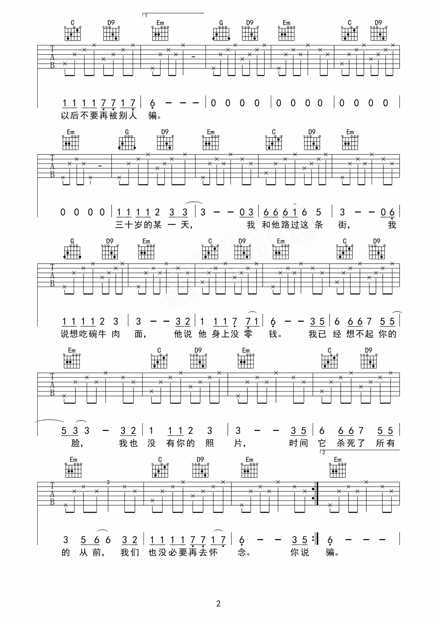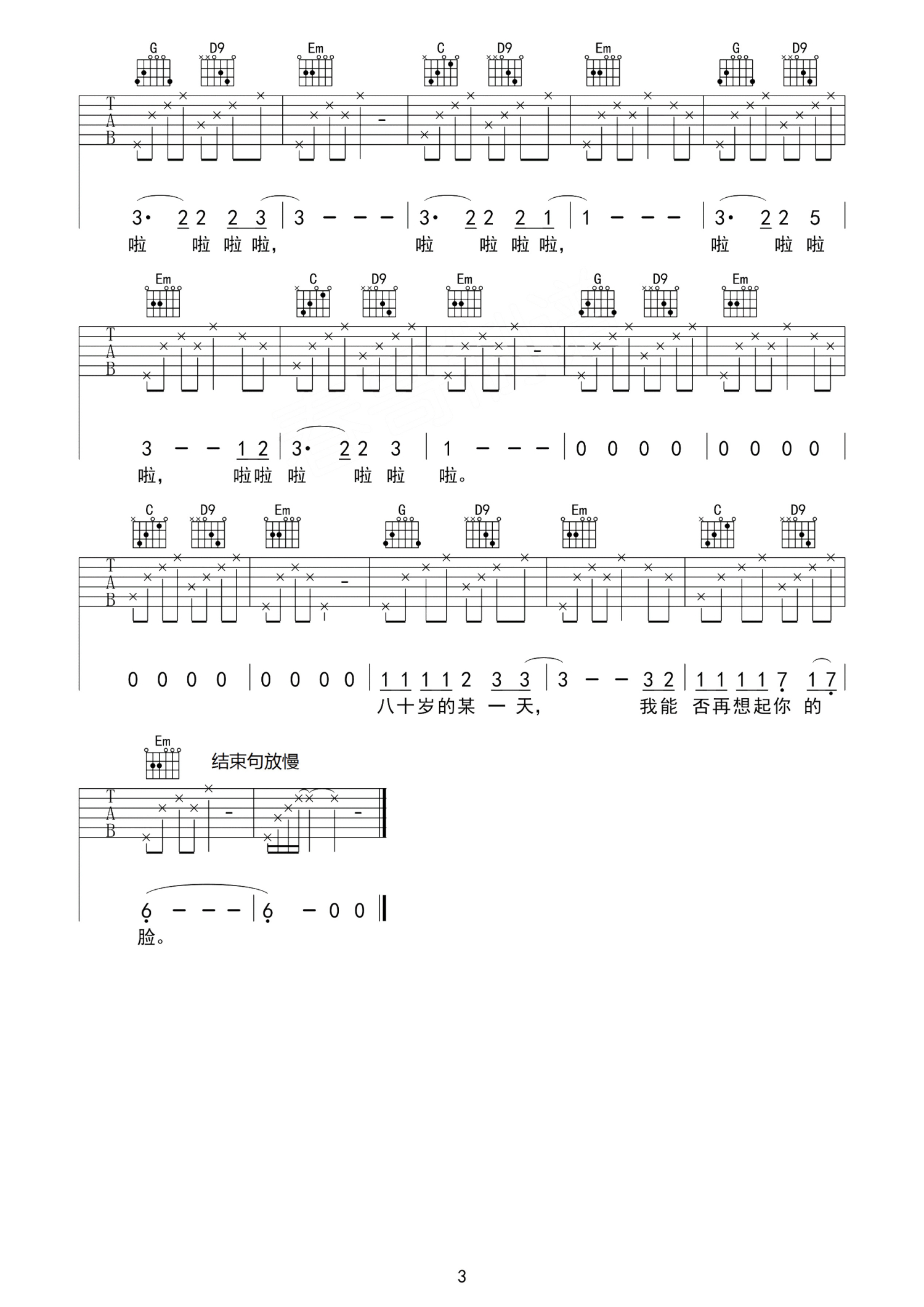 吉他弹唱G调来源:春哥1268 浏览2018-03-20 19:45发布图谱共3页