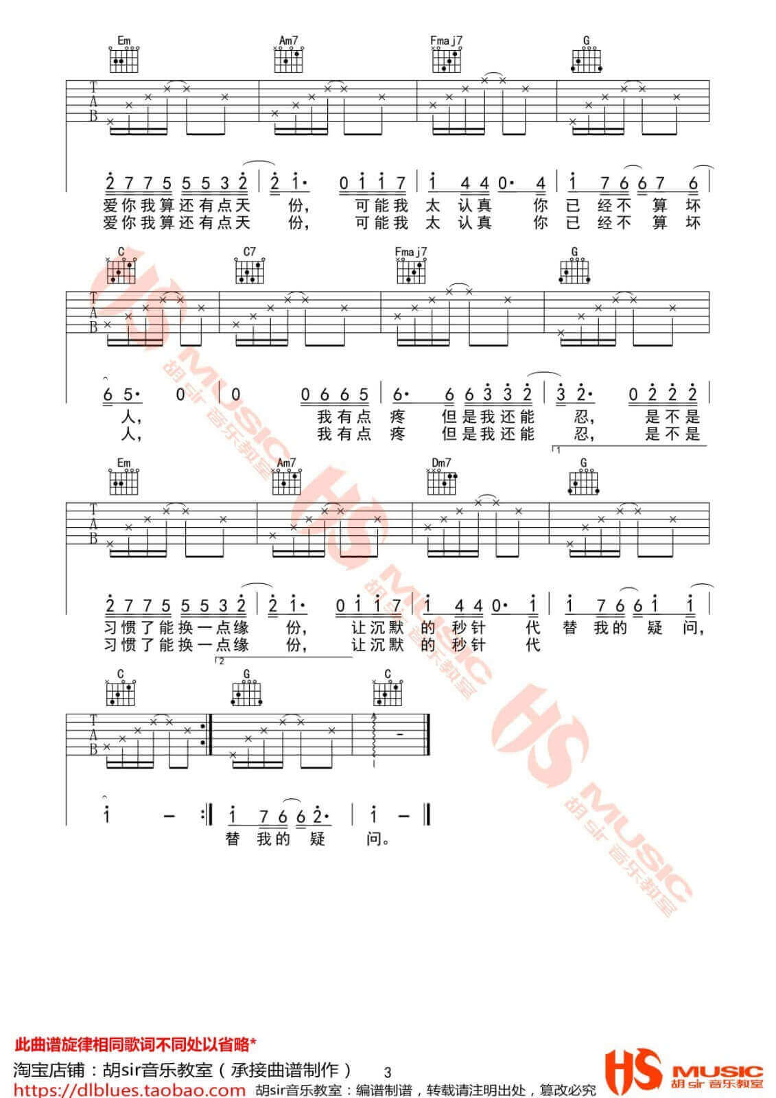 曲谱介绍: 天份吉他谱C调胡sir音乐教室编配的这个版本非常好听。这首歌来自薛之谦的个人专辑《怪咖》,编曲唱词都有薛之谦个人完成,这首歌曲从旋律来看,比较给人一种低沉和伤感的感觉,最令我熟悉的唱词就是,“我有点疼但是我还能忍,是不是爱你我还算有点天分。”这句唱词打动了多少人的心,唱碎了多少人的心呀,情不自禁的想问,爱一个人,真的需要天分吗,也许吧。