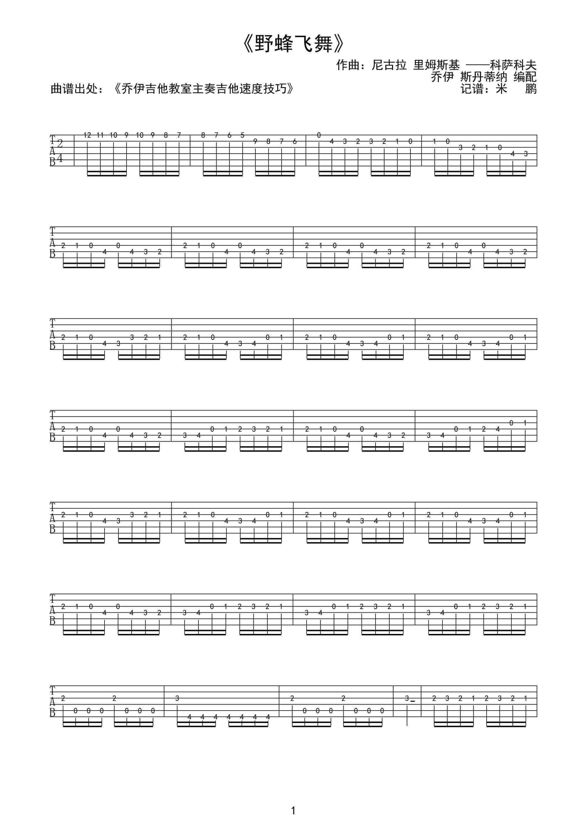 野蜂飞舞吉他谱 - Rimsky - 吉他独奏谱