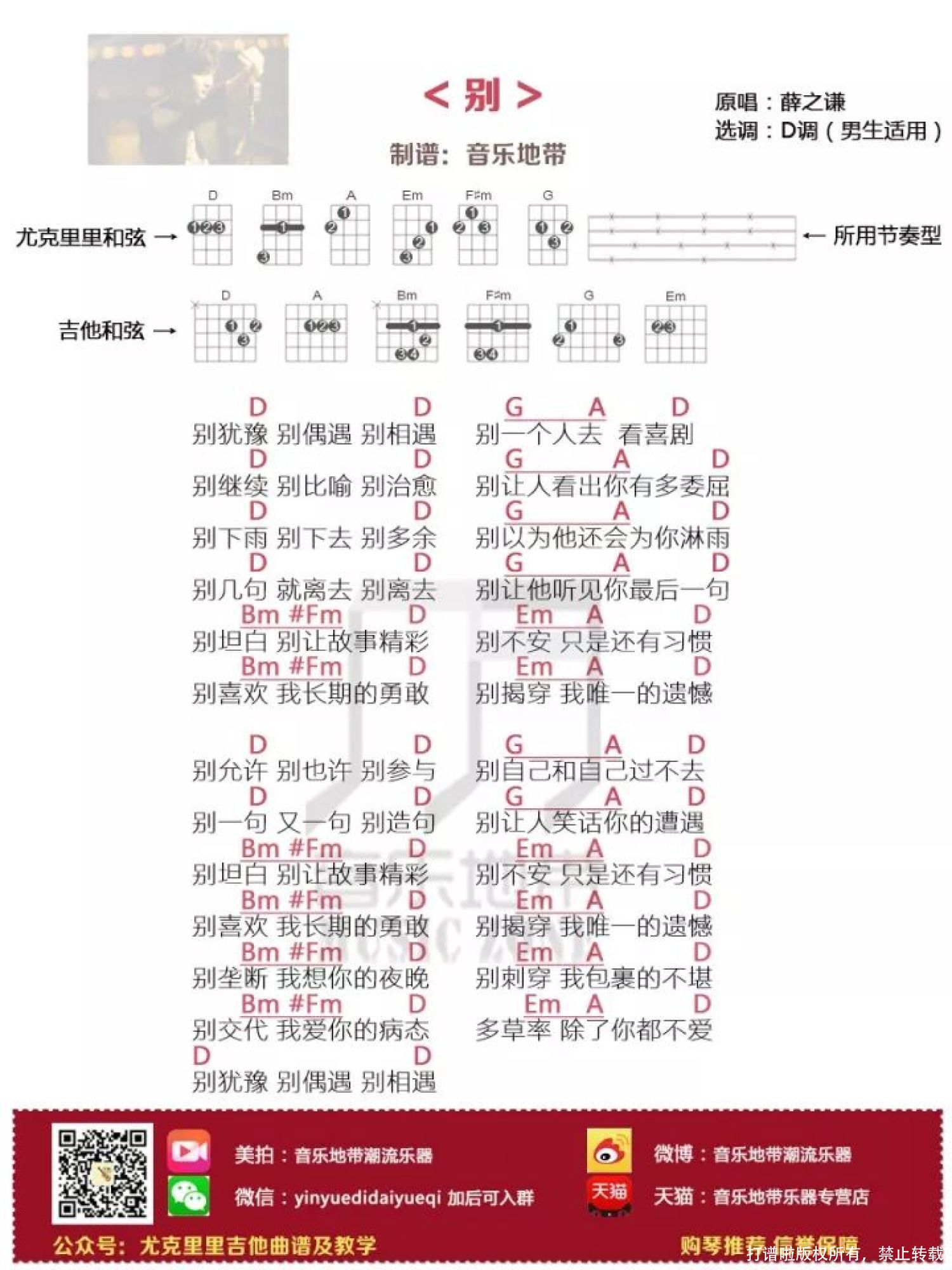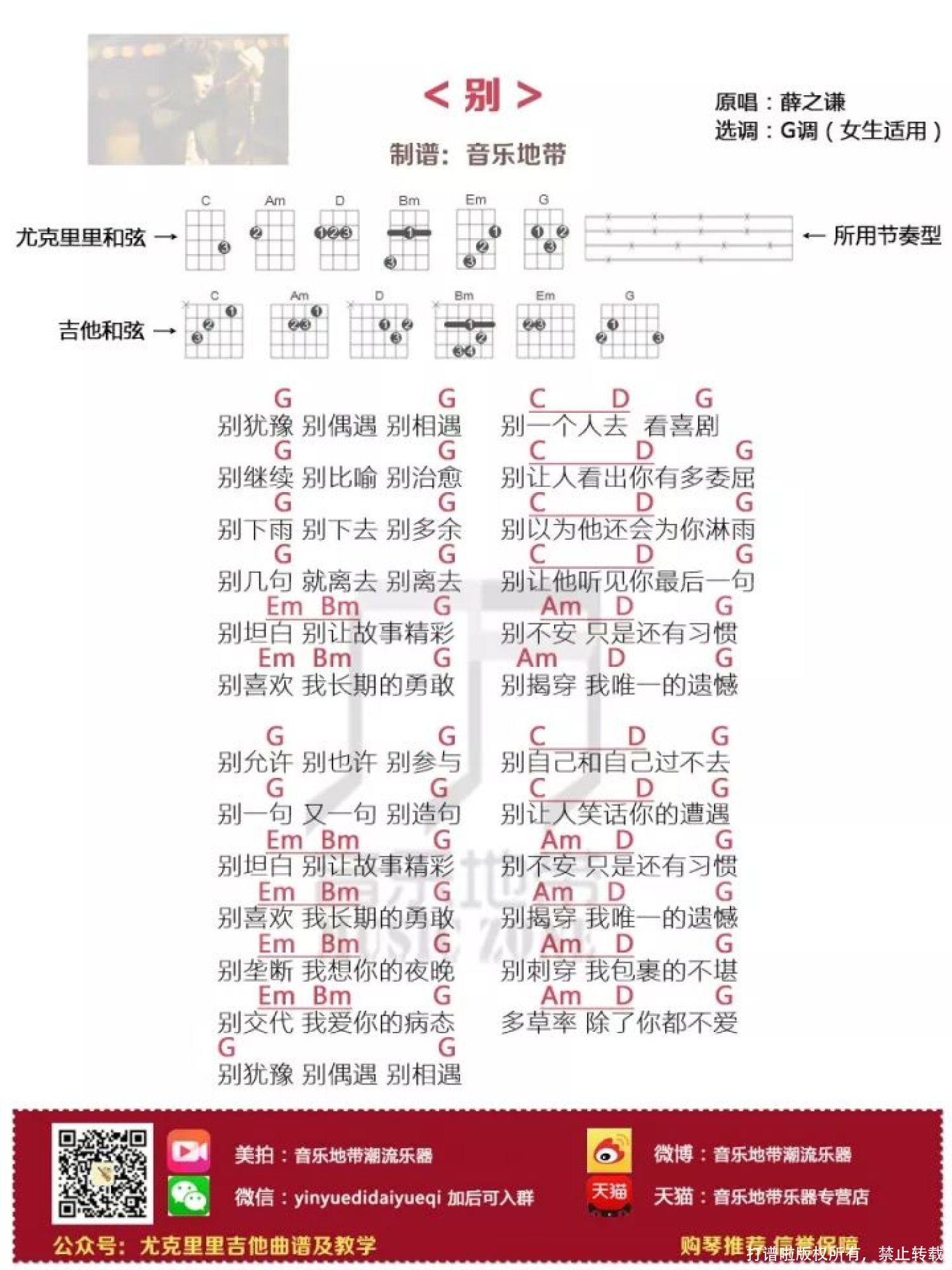 曲谱介绍: 《别》尤克里里谱 女声版 男声版