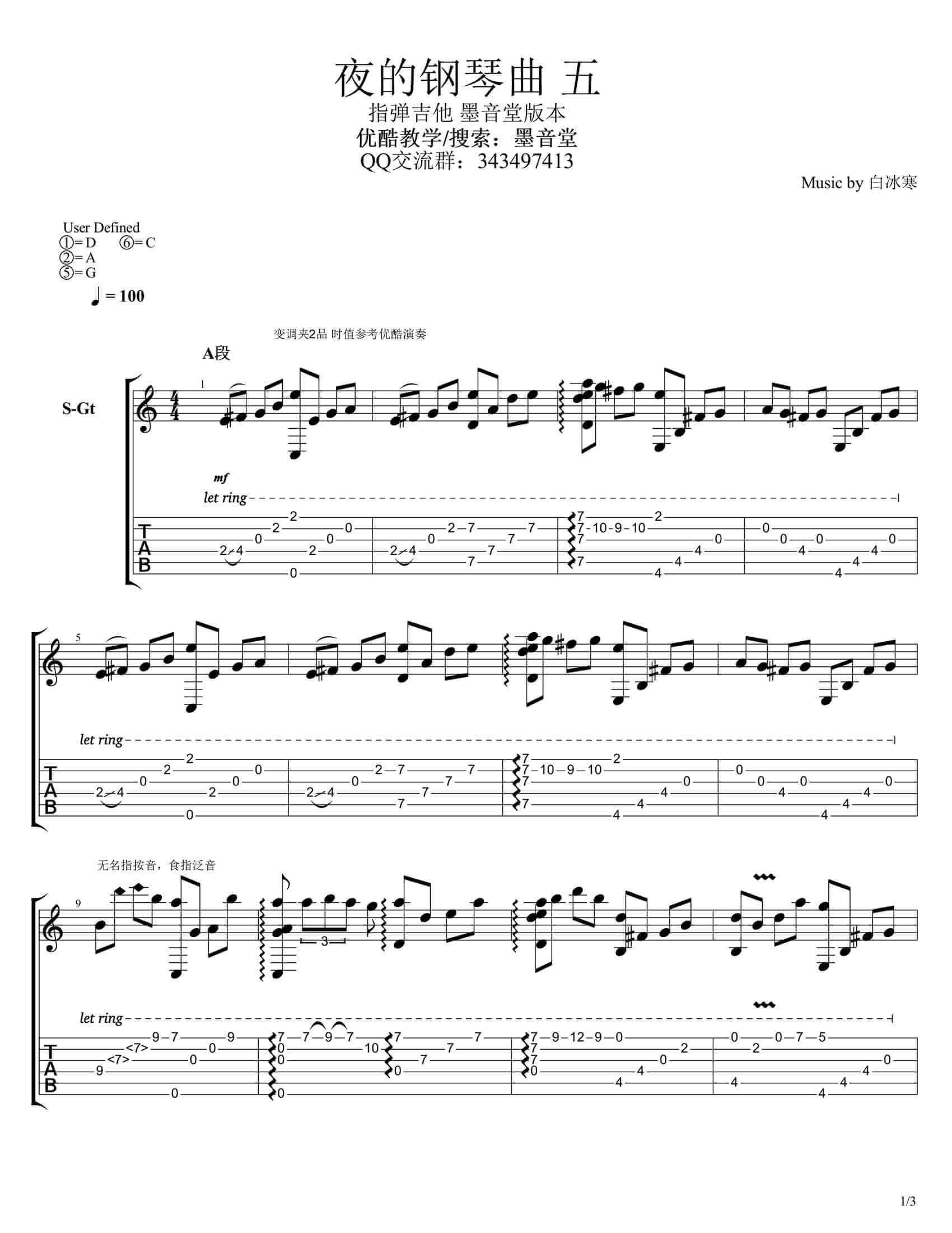 曲谱介绍: 夜的钢琴曲五吉他指弹谱,内附指弹视频演示,大家可以对照练习。 吉他弹唱演示及视频教学