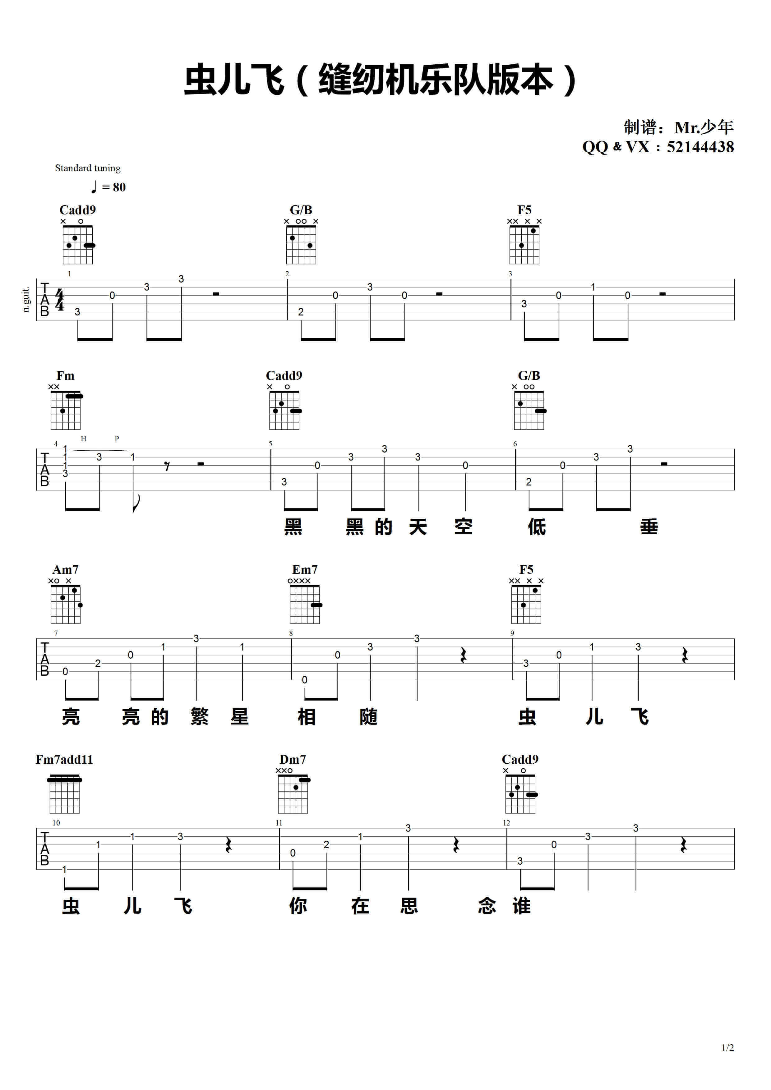 虫儿飞吉他谱 - 缝纫机乐队 - 吉他弹唱谱