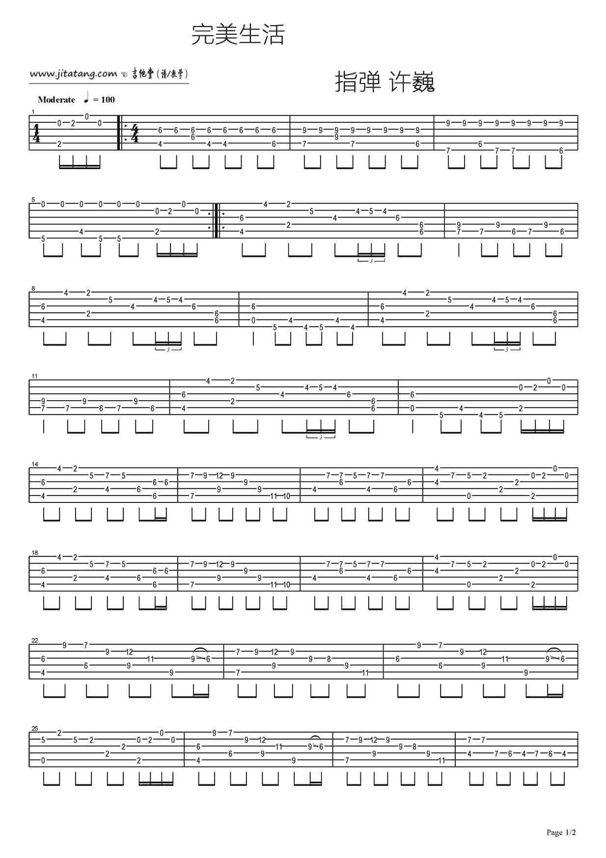 完美生活吉他谱 - 许巍 - 吉他独奏谱