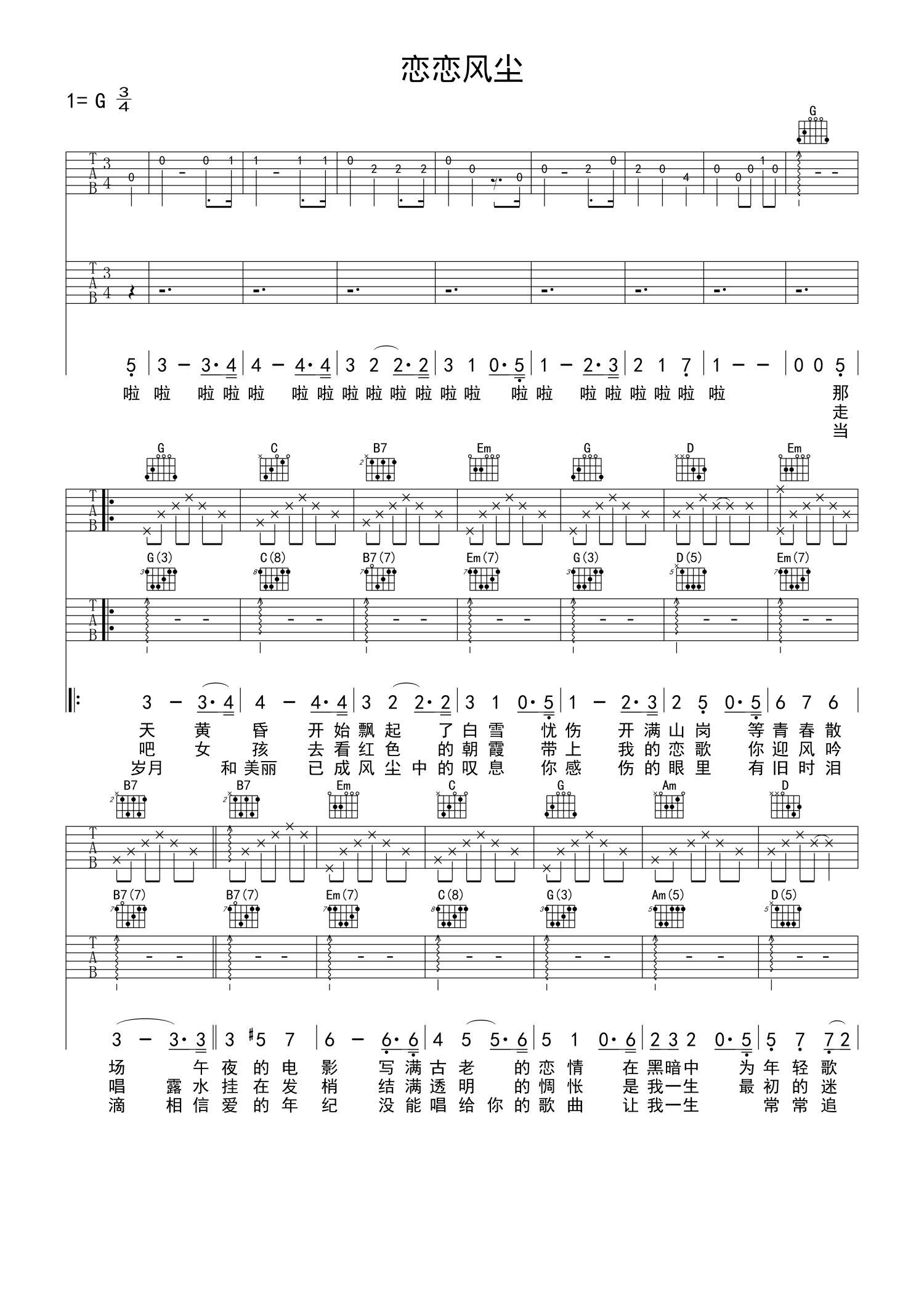 • 恋恋风尘吉他谱 - 程璧 - G调吉他弹唱谱 - 双吉他版第1张